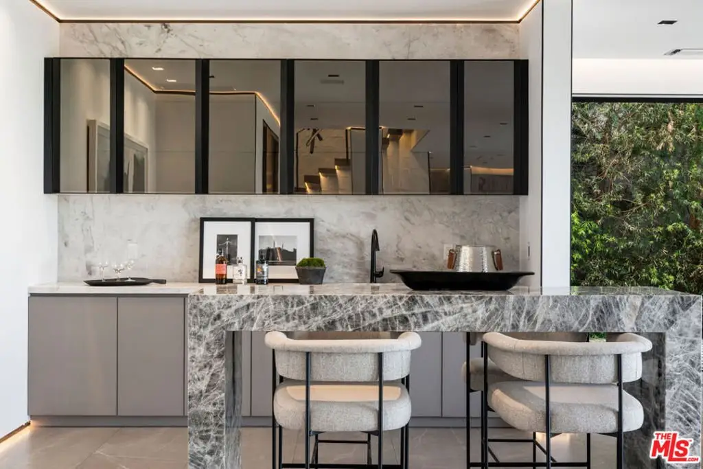 Welcome to "The Encino Observatory" an architectural masterpiece with jetliner unobstructed valley views and expansive rooftop deck conveniently located on one of the best streets and vantage points in all of the prestigious Encino Hills. The meticulously designed interior features top-of-the-line finishes, including a Miele kitchen with an elegant Onyx bar, a 100-bottle wine cellar, soaring ceilings adorned with a striking 20ft chandelier, Crestron smart home automation, and bespoke LED lighting throughout. Step through floor-to-ceiling panoramic glass doors to discover an entertainer's dream backyard, complete with an infinity pool, spa, outdoor fire-pit, and utmost privacy. Indulge in the opulent and Bali inspired primary suite boasting a designer-done bathroom, wet bar, and expansive walk-in closet. Ascend to the expansive rooftop deck and immerse yourself in arguably the finest views Encino Hills has to offer. Equipped with Crestron home automation and top-tier security systems, this residence offers both convenience and peace of mind. With close proximity to the vibrant amenities of Ventura Blvd, this estate presents a golden opportunity to experience the epitome of luxury living in absolute tranquility. Truly an architectural masterpiece awaiting the most discerning of buyers in all of Encino.