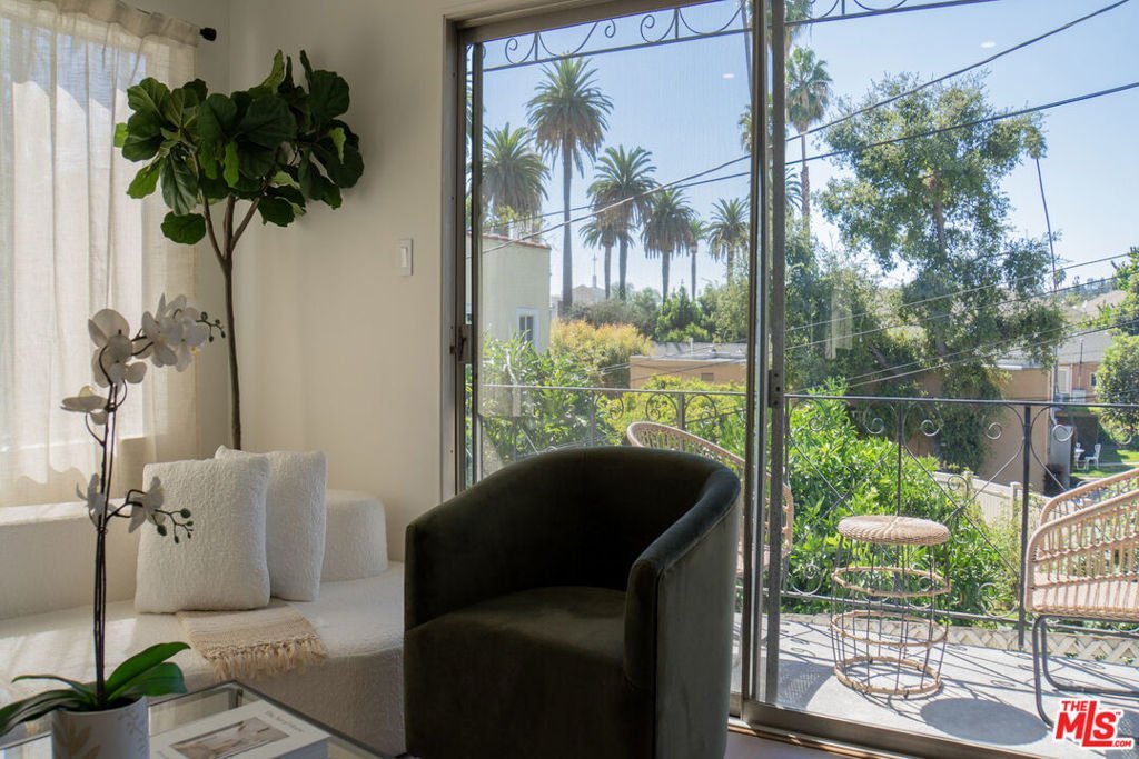 Spacious and updated Mid-Century condo in the heart of Los Feliz! This is a truly unique offering - a top-floor, end-unit condo in a quiet 1950's building, which has been completely restored and updated top-to-bottom with all new systems and designer finishes. The Ambrose sits on a peaceful street, lined with mature palm trees, perfectly situated between Hillhurst and Vermont. Tucked away to create calm, privacy and a connection with nature, yet close to all of the amazing amenities that make this neighborhood special! Originally built in 1959, the complex has been lovingly kept by the close-knit association, and retains that sought-after Mid-Century charm. Within this intimate complex, #8 stands out as an extraordinary unit. Sited on the top level and at the back with only one shared wall, the condo feels both airy and private, perched up away from the street. A complete retrofit and redesign has just been completed, with no surface left untouched. Systems such as plumbing, electrical and drain lines have been replaced. Walls have been stripped to the studs and reinforced, with new high-rated insulation added. New flooring, drywall, paint and recessed lighting throughout give a comfortable and luxurious feel. A brand new, oversized kitchen is chef-ready with all new cabinetry, quartz counters, stainless appliances, custom lighting and ample storage. The kitchen opens to a dedicated dining room with huge windows and a sleek chandelier. The spacious living room has a flexible layout, space for a WFH setup, and sliding glass doors that open onto the private balcony with Observatory views. The center hall boasts ample storage, including space for an in-unit W/D combo. Off the hall, a full bath perfectly incorporates an original cast iron tub with new designer tile, vanity, lighting and fixtures. The large primary bedroom creates a perfect retreat with clerestory windows, walk-in closet, and a beautiful new en-suite bath with walk-in shower, frameless glass enclosure, and dramatic floor-to ceiling tile. Meanwhile, the second bedroom is perfect as a guest room, office or nursery, and also includes an oversized walk-in closet. Finally, the dedicated carport space also includes additional storage. Located mid-block on Ambrose Ave, the building's location gives an ideal blend of privacy and convenience. Close to Griffith Park, transit, freeways, as well as the countless cafes, shops and dining options in Los Feliz and the surrounding neighborhoods, the home is also convenient to studios and employment centers in nearby Hollywood. With a sensible floor plan, original charm, meticulous upgrades, and thoughtful finishes, this move-in ready condo strikes a perfect balance and sits ready for its next chapter!