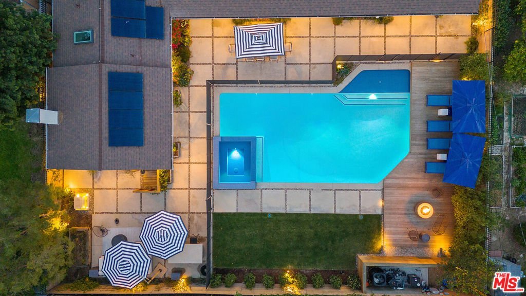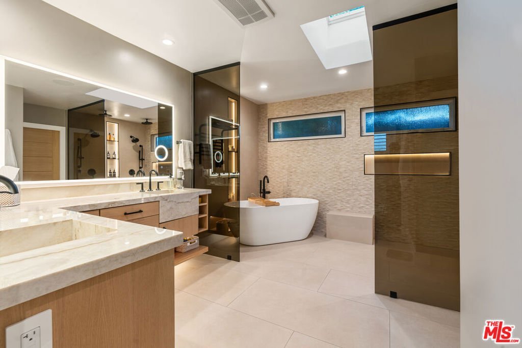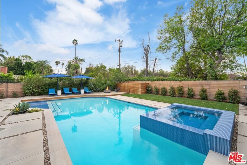 Originally designed by renowned architect Charles Du Bois, A.I.A., this iconic Woodland Hills residence has been completely reimagined and rebuilt into a true modern compound. Envisioned as the sellers' forever home (NOT A FLIP), more than $1.5 million was invested to reconstruct and elevate this Mid-Century masterpiece with uncompromising craftsmanship, cutting-edge technology, and the finest materials throughout. Beyond the striking architectural presence and custom double-gated entry, the property offers exceptional privacy and security, thoughtfully designed as an ultra-secure retreat. Nearly every system in the home is new including electrical, plumbing, sewer lines, roof (fully insulated), dual HVAC systems, tankless water heater with recirculating system, OWNED solar, and hardwired internet in every room. A Hydrawise fire-suppression roof sprinkler system, French drain system, dual camera systems (hardwired and WiFi), full alarm system, and comprehensive mesh WiFi coverage inside and out ensure safety, performance, and peace of mind at every level. Inside, the open-concept layout honors Du Bois' timeless design while seamlessly integrating modern luxury. The chef's kitchen is a showpiece, appointed with premium Taj Mahal Quartzite countertops, custom hardwood cabinetry, induction cooktop, double ovens, custom under-cabinet lighting, and top-tier appliances designed for both elevated entertaining and everyday living. Sonos audio flows throughout the home and backyard, creating a fully integrated lifestyle experience. The dramatic fireplace has been completely rebuilt with five imported Italian porcelain slabs and features an automatic fire starter, anchoring the main living space with warmth and architectural sophistication. Every bedroom has been thoughtfully reconfigured to connect directly to a bathroom, enhancing both comfort and functionality. The primary suite offers a spa-like retreat with heated floors, skylight, custom walk-in closet, and an architecturally curated bath. Outdoors, the private resort-style grounds rival luxury estates. The saltwater pool and spa offer a rare dual-function system transform the jacuzzi into a heated spa or a revitalizing cold plunge. A custom smart-controlled fire pit, outdoor bar and dining area, designer outdoor shower, and integrated sound system create the ultimate entertainer's setting. This is not simply a remodel it is a full-scale reinvention of a Charles Du Bois classic into a secure, technologically advanced, design-forward sanctuary. Located in one of Woodland Hills' most desirable enclaves near top-rated schools, premier shopping, and dining and just minutes to Calabasas and Westfield Topanga this is a rare opportunity to own a legacy architectural property rebuilt for the future.