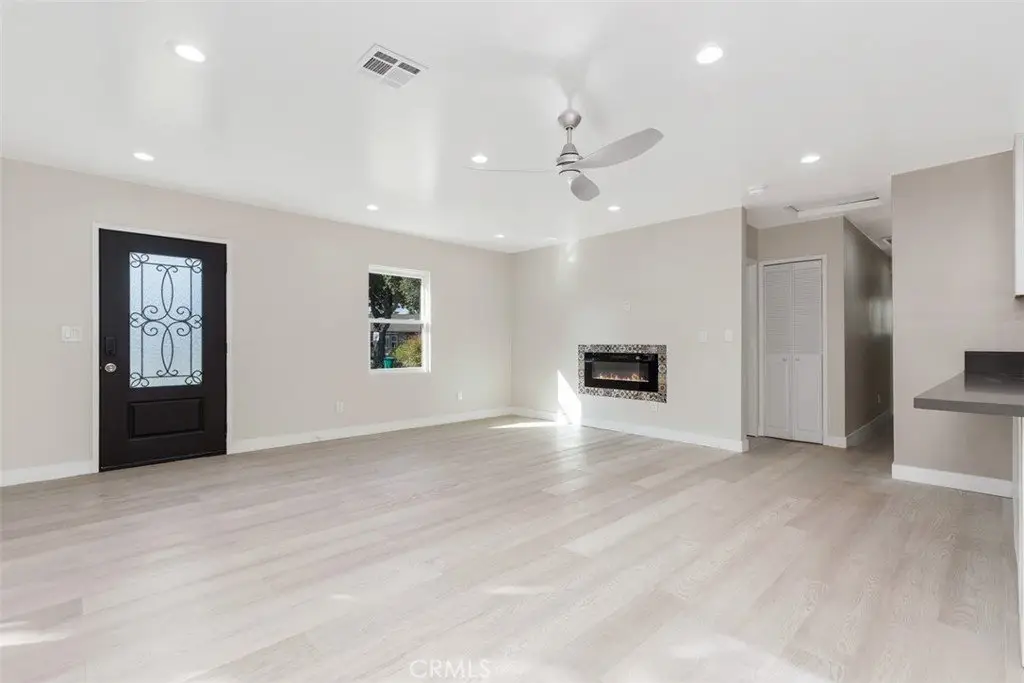 Turnkey Gem! Single Story 3 Bedroom, 3 Bath, pool home located on a quiet corner lot with complete remodel from roof to flooring! All new electrical, Pex piping, new roof, new flooring, new baths, new kitchen and newly plastered pool. Enter into an open concept living/family area complete with in-wall electric fireplace, eating area and entertainers kitchen with a 9 foot quartz counter peninsula. The kitchen also has new cabinets, new high end Frigidaire stainless steel appliances, pot filler at the stove, steel sink, disposal, and reverse osmosis water system. All 3 bathrooms have new vanities, fixtures, toilets, tiled showers/bath and LED lit mirrors. New paint and tile/vinyl plank flooring throughout. New quiet AC/heat pump system with attic condenser, new ducting, attic electric fan with thermostat. Fully upgraded electrical system with new electrical panel, 220V outlets (garage EV charger + stove) and new electrical outlets and switches. Enjoy time in the backyard with 9ft deep pool complete with new heater, filters, and gas fire pit for those cool evenings. Security system includes exterior cameras, window and door alarms around pool access, doorbell camera. Exterior upgrades include a new 30 year roof, new sprinkler system, exterior lighting, spanish style tile porch, and new front door. Conveniently located near CSLB, shopping and entertainment, and nearby freeway access. So many features that you have to see to believe!