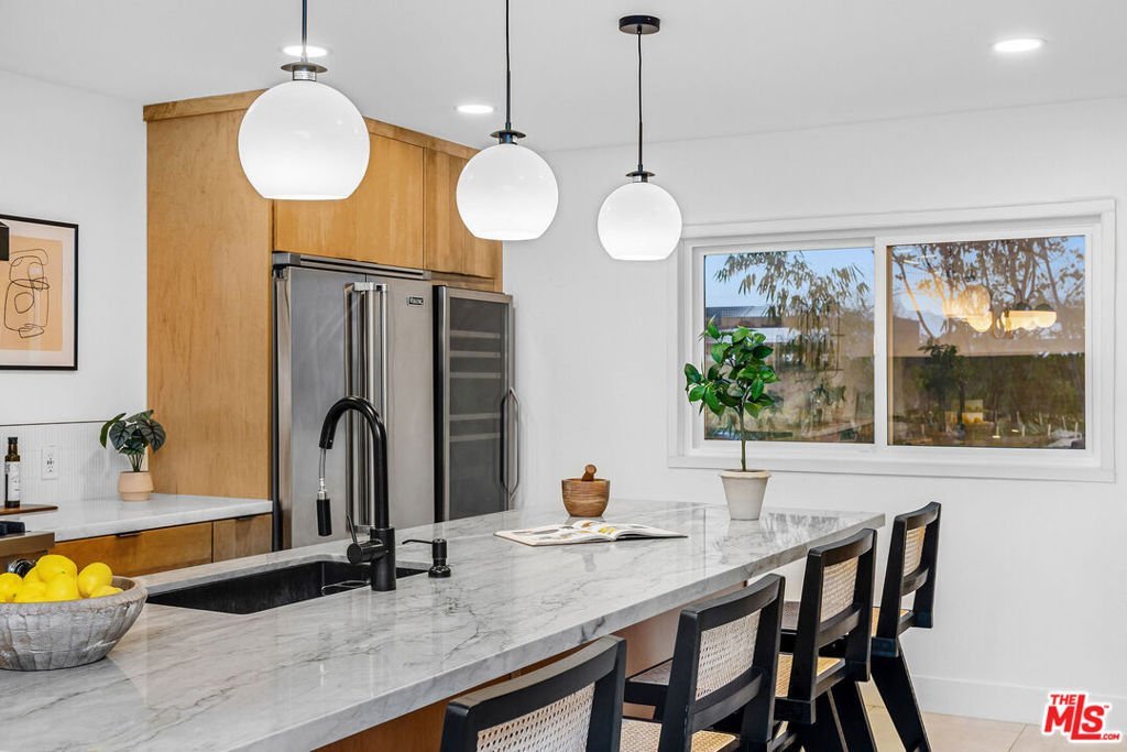 This fully updated 2BD/3BA contemporary Marina Del Rey townhouse offers a bright, multi-level open floor plan with abundant natural light adjacent to the Ballona Wetlands with prime walkability. The living room's soaring ceiling enhances the home's sense of volume and warmth, creating an inviting space for everyday living. Just up the split-level, there is an extensively renovated chef's kitchen featuring custom cabinetry, Viking appliances, Quartzite countertops, breakfast bar, full dining area, 100+ bottle wine fridge, carbonated beverage tap system and a pantry an entertainer's paradise! Upstairs, the oversized primary suite with an abundance of closet space and sprawling extra room ideal for an office, reading retreat, or meditation nook, features a luxurious soaking tub next to the walk-in shower. Skylights and large windows bathe the primary suite in natural light, creating a peaceful, airy ambiance. The second bedroom boasts an enormous WIC with its own tree canopied patio that provides additional secluded outdoor space. On the lower level, the attached oversized two car (or three tandem) garage with Tesla charger is begging for a unique office or hobbit's TV den. There's also an additional spacious storage room, ideal for all your beach gear, bikes, and outdoor toys. Enjoy resort-style amenities at Villa San Cipriano, including a sparkling pool, rejuvenating sauna, and nightly security patrol, all surrounded by lush, mature landscaping. Located just minutes from the beach, Marina del Rey Boardwalk, Trader Joe's, Marina Marketplace, theaters, restaurants, bike trails, parks, and LAX this home embodies the perfect balance of tranquility, convenience, and coastal living in one of the Westside's most coveted communities.