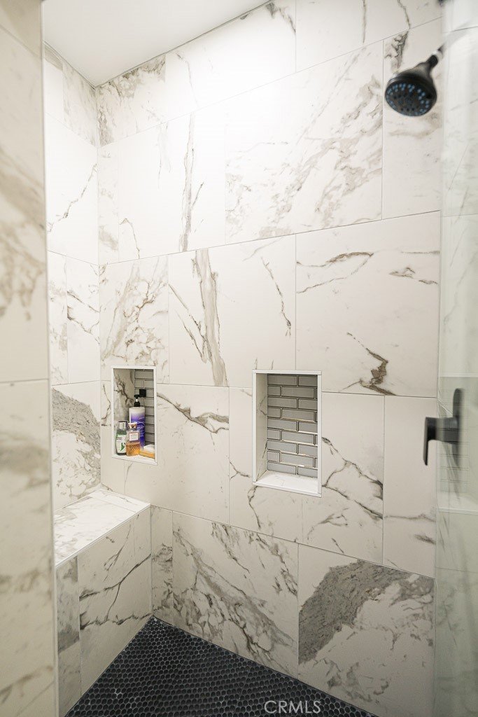 A gourmet kitchen equipped with stainless steel appliances, custom soft-close cabinetry, over the stove pot filler, farmhouse sink and quartz countertops serves as the heart of the home, seamlessly flowing into a sophisticated dining and lounge area. Each bedroom offers ample space and thoughtful touches, including ceiling fans, and USB outlets in each room. The bathroom in the master bedroom has a double sink with vanity, stand up shower and an Empava Alcove massage tub.