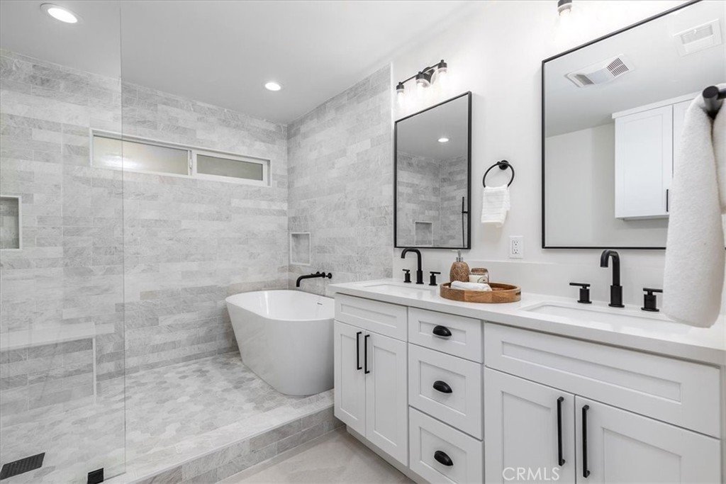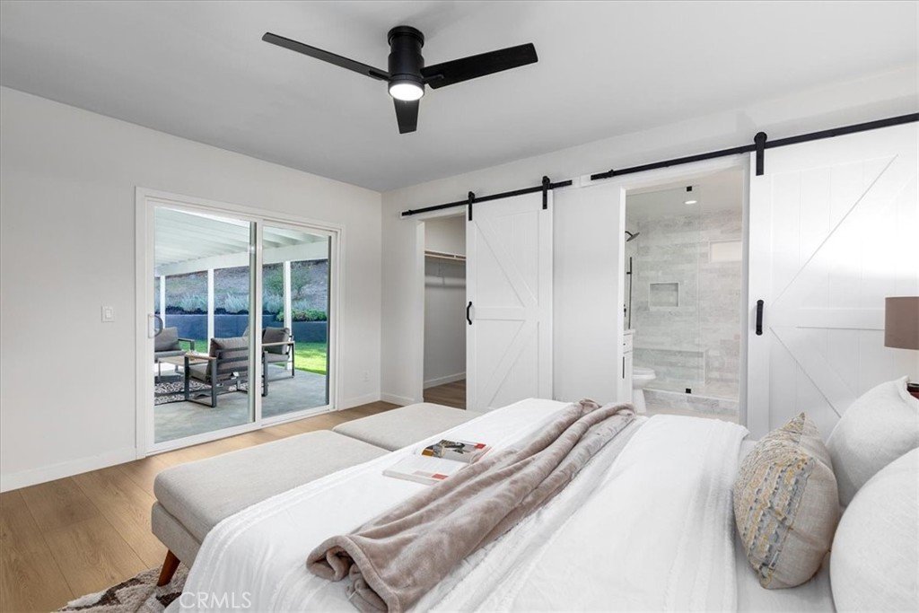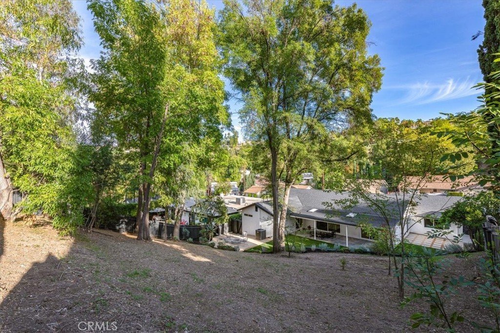 Tranquility awaits at this incredibly soulful retreat in one of the most coveted pockets of Woodland Hills. Set amongst an abundance of mature trees and situated on a expansive homesite, this stunning residence makes you feel like you're a world away from the city, while conveniently located just a short distance to all of the fantastic shops, restaurants, and markets that Woodland Hills and nearby Calabasas have to offer. Step through the charming entry to find open and airy spaces, all of which are impeccably designed and exude the utmost attention to detail. The dining room and spacious family room have sliding doors that open to the serene outdoors. The light-filled formal dining room flows seamlessly into the kitchen for effortless entertaining. The impressive kitchen is a Chef's dream and is well-appointed with stainless steel appliances - ample cabinet and countertop space, tons of natural light. An adjoining laundry room provides extra storage and garage access. Three generously sized guest bedrooms offer leafy views and share a beautifully designed bathroom with new tile in the shower and marble tile flooring. The home's primary bedroom is simply heavenly, featuring ample closet space, and a spa inspired en-suite bathroom with a marble tiled shower that is bathed in light. Sliding glass doors lead you to the absolutely magical outdoors. Here you'll discover a sprawling yard with multiple areas to lounge and dine, and fire pit, all while experiencing total privacy and looking out to a canopy of trees in every direction. The dreamy outdoor spaces provide the perfect setting for weekend brunches and dinner parties with family and friends. Additional features of the property include new windows, new roof and a new water heater. This is Southern California living at its best.