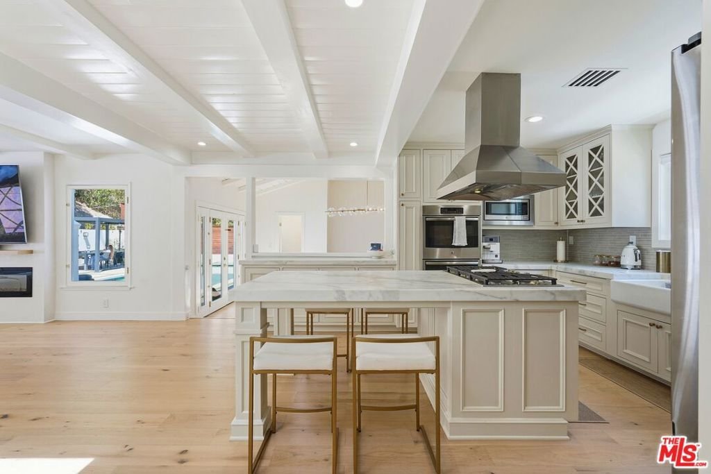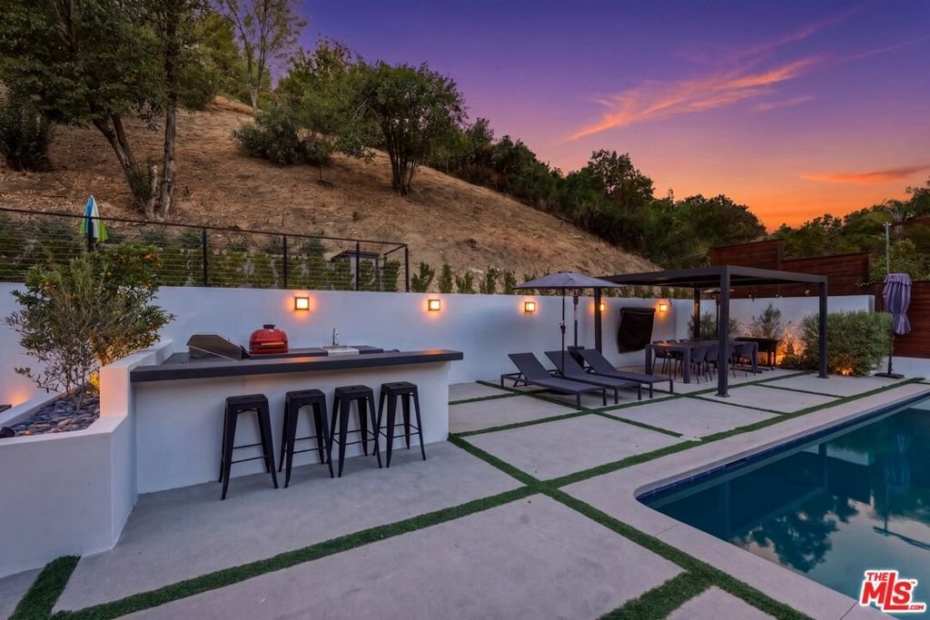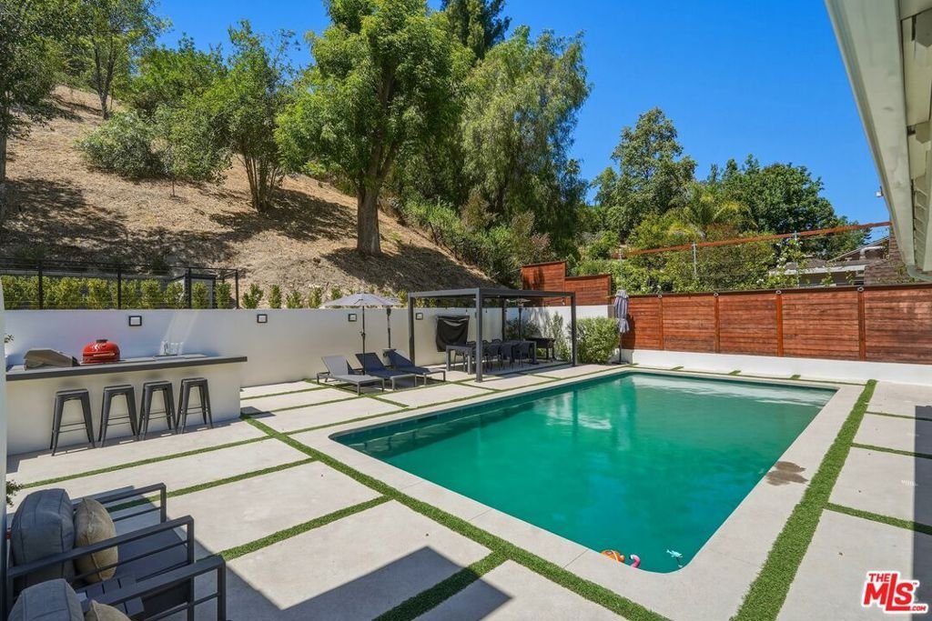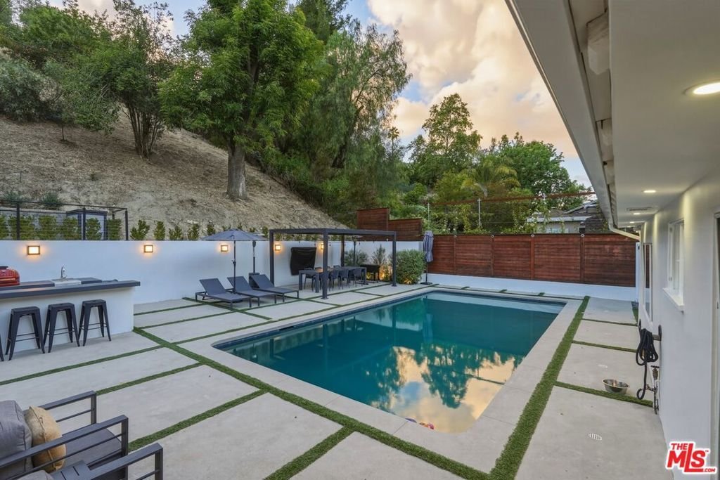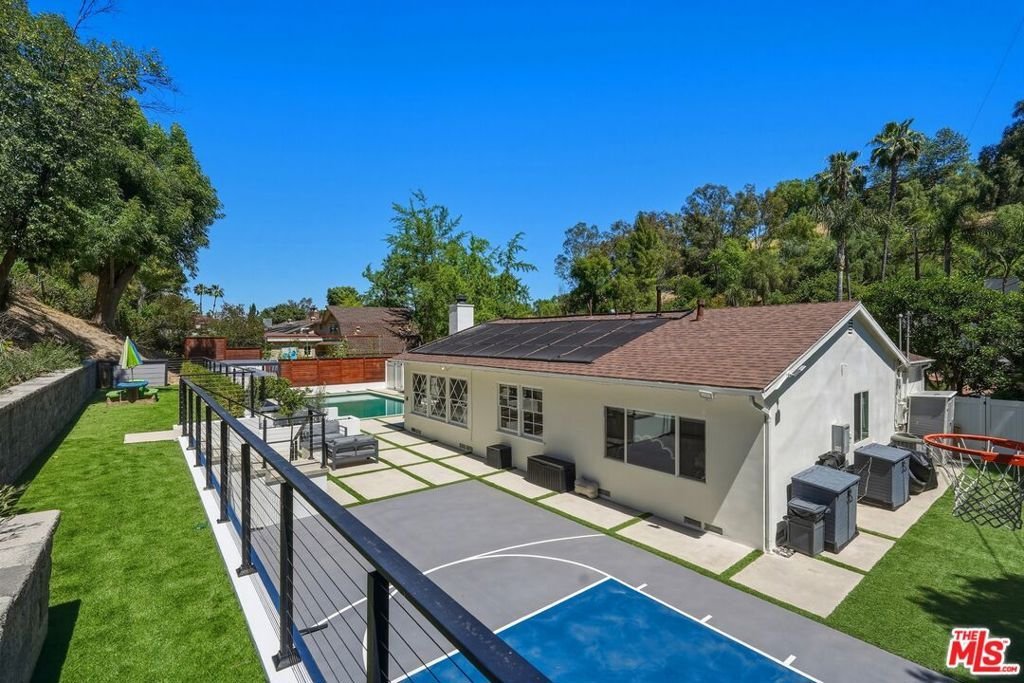 Welcome to a rare offering south of Ventura Boulevard, nestled on a quiet cul-de-sac where privacy, tranquility, and community come together seamlessly. Set on an expansive 17,563 sq ft lot, this beautifully upgraded 4-bedroom, 3-bathroom residence spans approximately 2,310 sq ft of thoughtfully designed living space, flooded with natural light and surrounded by a peaceful neighborhood known for its warmth and close-knit feel.From the moment you enter, the home showcases a bright and inviting atmosphere with fresh interior paint, new flooring throughout, and a seamless flow ideal for both everyday living and entertaining. The fully updated kitchen is equipped with brand-new appliances, offering both style and functionality for the modern homeowner. Every detail has been considered, including new A/C and air ducts for optimal comfort, and renovated bathrooms featuring new vanities and a newly installed bathtub.The outdoor space is truly a standout featuredesigned for both relaxation and entertainment. Enjoy a resort-style backyard complete with a sparkling pool enhanced by solar heating, a built-in BBQ area, and a newly constructed patio with a fire pit and outdoor TVperfect for hosting or unwinding under the stars. For added fun and versatility, the property also includes a private basketball court and an in-ground trampoline, creating a unique environment for all ages.Adding to the home's versatility is a 2-car garage, currently converted into a vibrant kids' playroomideal for flexible living, creative space, or easily returned to its original use. The property also features an extended private driveway with convenient in-and-out access, offering ample parking for up to 6 vehiclesan exceptional feature for both everyday living and entertaining guests.Tucked away in a serene cul-de-sac, this home offers exceptional privacy while still being part of a welcoming neighborhood community, where neighbors enjoy a peaceful lifestyle and stay connected through their own local network.This is a rare opportunity to own a turn-key home in one of the most desirable pockets south of Ventura Boulevardwhere comfort, style, and community truly meet.