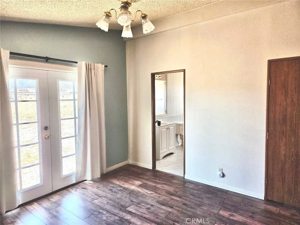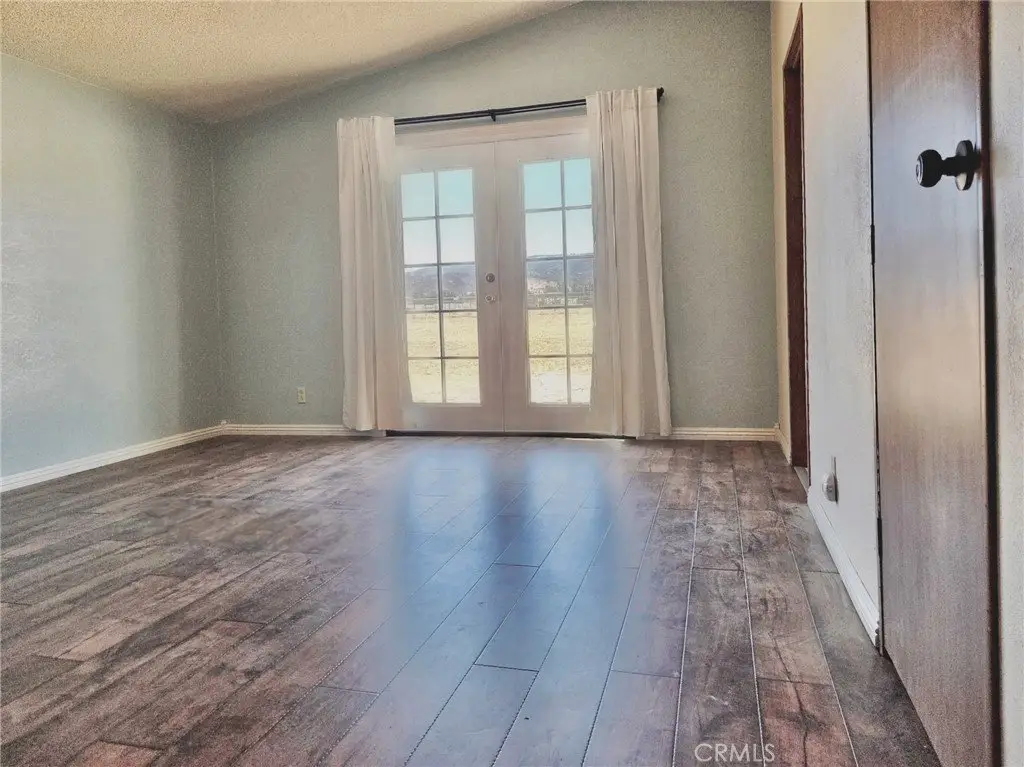 Inside, a front entrance foyer opens to a freshly painted spacious, high ceiling open plan living, dining, and family room area, with French doors to the backyard. Generous sized kitchen features new planked wood laminate flooring, wood cabinets, large pantry, and attached dedicated laundry room. Large main suite bedroom is situated on one side of the living area, and features new planked wood laminate flooring, freshly painted walls, large walk-in closet, and large private bathroom with new flooring and vanity and walk-in shower/soaking tub. Three additional carpeted bedrooms are situated opposite of the layout with tall ceilings and built-in closet. A full bath is located next to the trio. Well maintained property by the current owner of 30-plus years. Amenities include swamp cooler, wood-burning fireplace, window treatments. Escape the hustle-and-bustle of urban sprawl. Enjoy your morning coffee with beautiful sunrises and wind down at night watching sunsets that accent hillsides of Los Angeles National Forest and Tehachapi Mountains. Close community essentials are found in Antelope Acres; additional resources, such as schools, shopping, fueling range from 23-40 miles, including Rosamond, Gorman/Frazier Park, Lancaster, Santa Clarita. Recreational lake options include Pyramid and Quail Lake among others. The area receives regular mail/parcel delivery, and the public electrical power is underground.