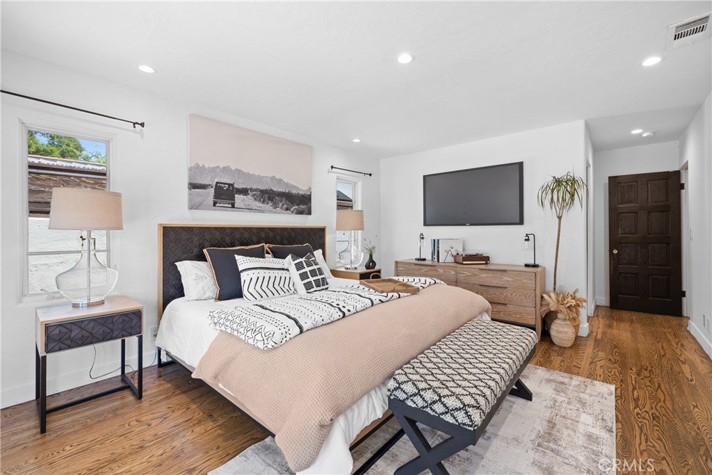 A Refined Spanish-style Retreat in Toluca Woods, this residence pairs Timeless Architecture with a Luxurious Modern Sensibility. A Red Tile Roof, Arched Wood Entry Door and intimate Front Porch set the tone, while inside, the Living Room’s Original Fireplace and Vintage Sconces anchor the home’s character. The Redesigned Kitchen is both Beautiful and Functional, Featuring a Central Island, Thermador Range, Wine Refrigerator, Quartz Surfaces, and Custom Cabinetry and Tile. A Separate Dining Area enhances both everyday Living and Entertaining. The Spacious Primary Suite offers a Serene Escape with a Private Bath, Two Separate Closets, and French Doors opening to the Charming Rear Patio. Secondary Bedrooms are understated and feature Neutral Finishes. Hardwood floors, Arched Passageways, and Warm Wood detailing Unify the Interior. Outdoors, a Saltillo-tiled Patio and Soft String Lighting create a Romantic, Resort-like setting for Al Fresco Dining, while the Jacuzzi with Cascading Waterfall provides the Ultimate Relaxation. Adding Exceptional Versatility, the Garage has been Converted to a Guest Unit and includes its own ¾ Bath and Kitchenette—Ideal for Guests, Office, or a Private Studio. The Driveway can accommodate 3 cars. Walk to the Highly Rated Toluca Elementary School. Conveniently located to the Studios, Major Freeways, Shops and Cafes. The Main House is 3 Bedrooms, 2 Bathrooms. The Guest Unit includes a 3/4 Bath.