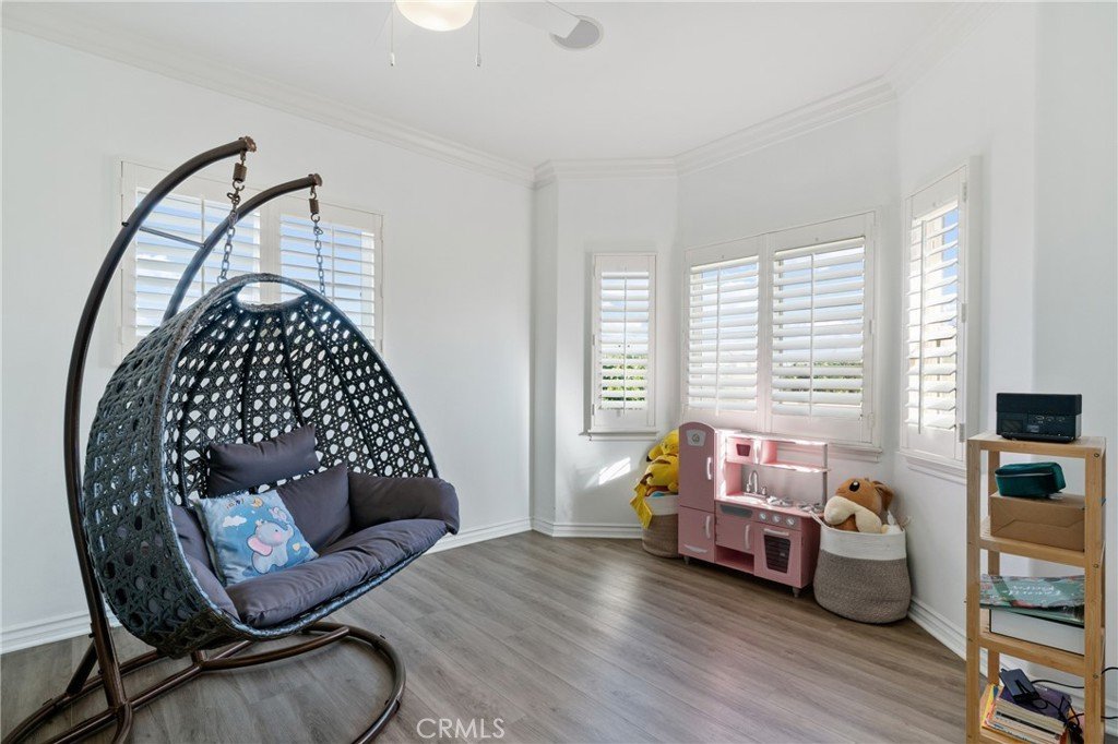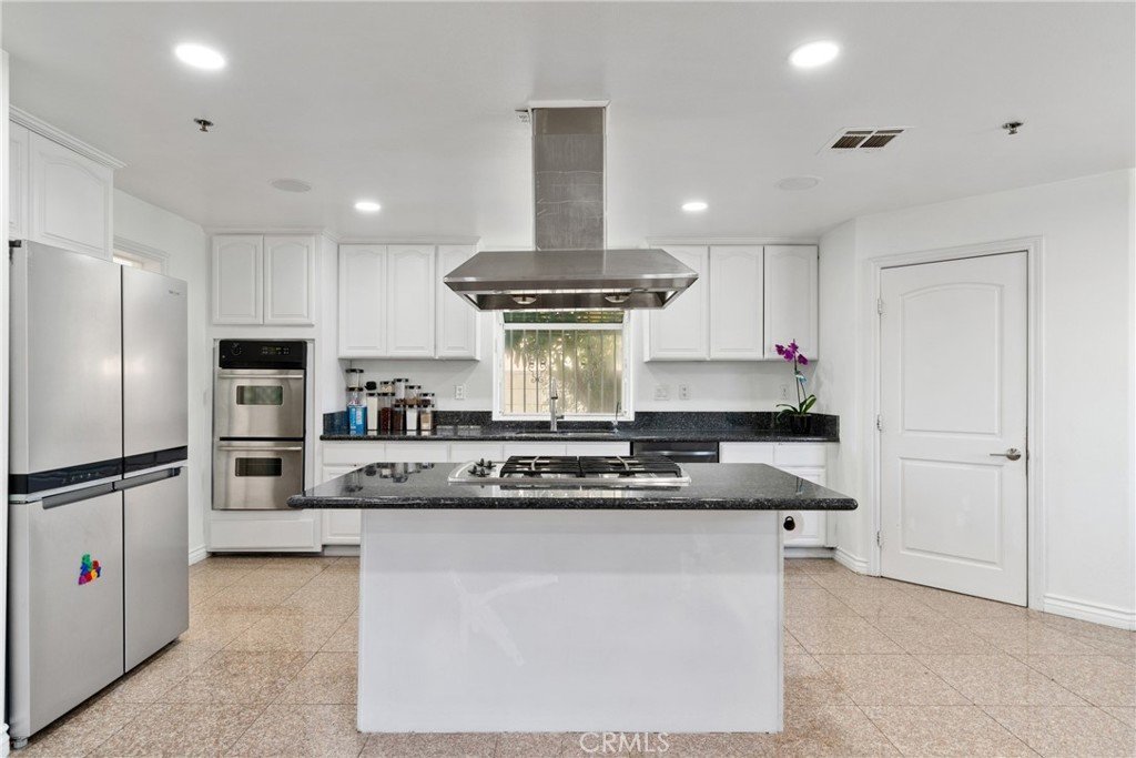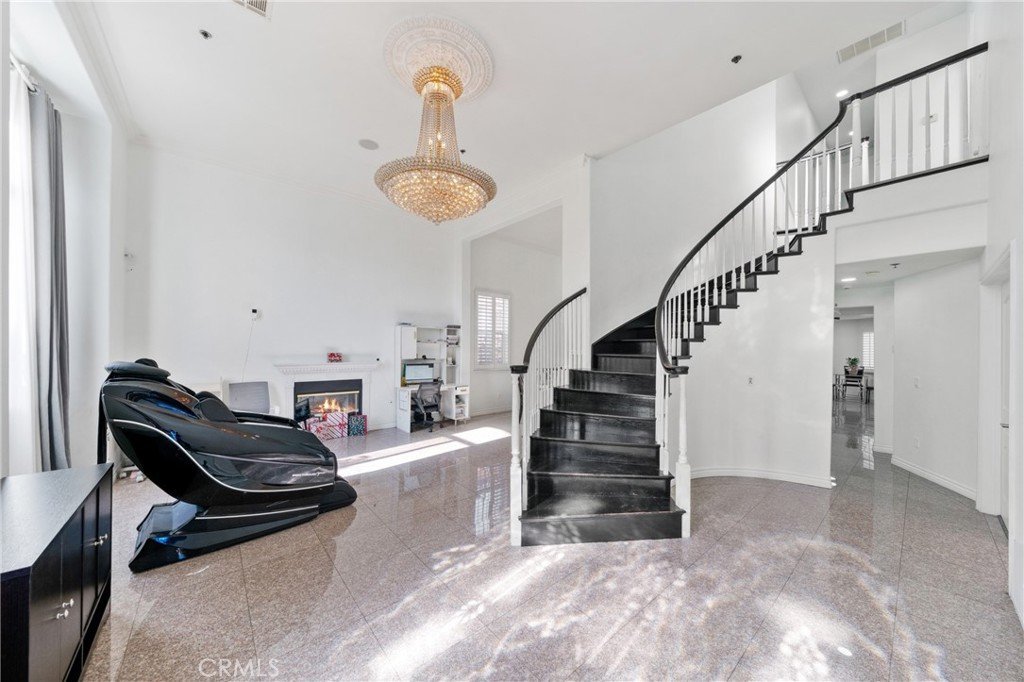 This south-facing Mediterranean-style home, built in 2006, offers 5 bedrooms and 6 bathrooms, with over 3,000 square feet of thoughtfully designed living space. By entering the foyer, what you see is an elegant curving staircase leading upstairs, lighted with a crystal chandelier hanging from the vaulted ceiling. The open floor plan includes a spacious family room seamlessly connected to the main kitchen, along with a large island, granite counter tops, custom wood cabinets, and a separate wok kitchen! The plantation shutters and screens fitted with the windows provide both comfort and functionality.