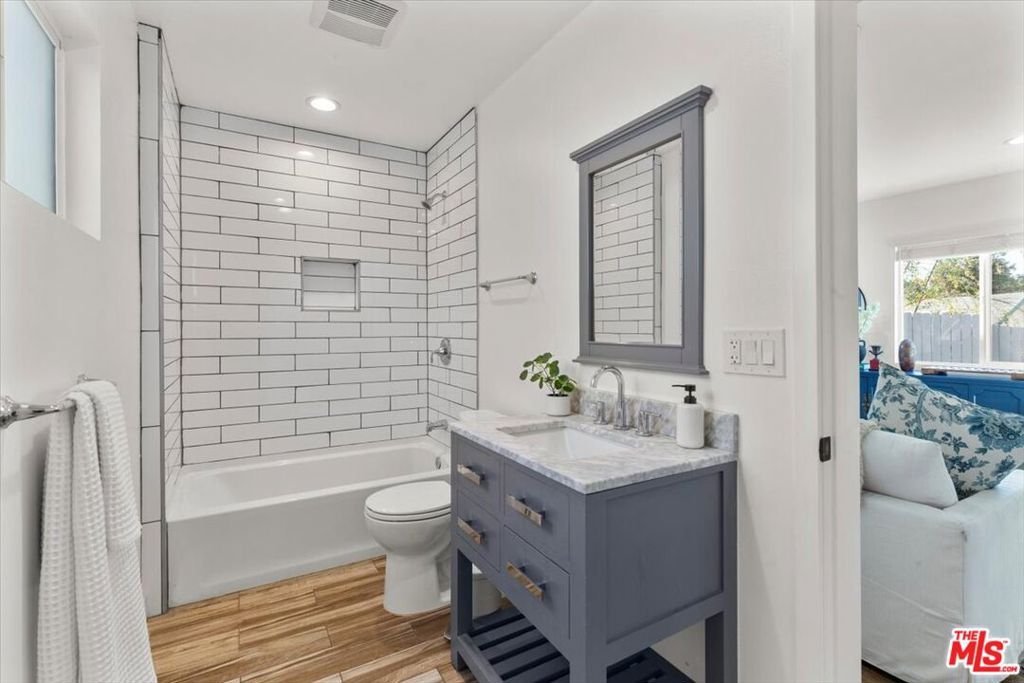 Incredible opportunity to own a newly reimagined property featuring a beautifully renovated single-family home and a fully permitted 1-bedroom, 1-bath ADU on one of the most desirable streets in Eagle Rock. The front residence began as a charming Craftsman bungalow and has been thoughtfully expanded into a spacious 4-bedroom, 3-bath home that blends classic character with modern comfort. The second-story primary suite features soaring ceilings, a walk-in closet, and a luxurious bathroom with spa tub, glass-enclosed shower, and dual vanity. The main level offers an open layout with seamless flow between the kitchen, dining, and living areas, plus a versatile den ideal for a home office or media room. Three additional bedrooms and two bathrooms provide flexibility for family, guests, or workspace. At the rear of the property sits a newly constructed and fully permitted 1-bedroom, 1-bath ADU with its own private fenced yard, patio, and sauna creating a peaceful retreat. Built above the two-car garage, the bright and spacious unit features an open living area, full kitchen, comfortable bedroom, and beautifully finished bath. The two-car garage offers additional flexibility and could serve as a home office, gym, creative studio, or potential future ADU conversion (buyer to verify). A rare turnkey property offering modern living, outdoor amenities, and income potential in one of Northeast LA's most sought-after neighborhoods.