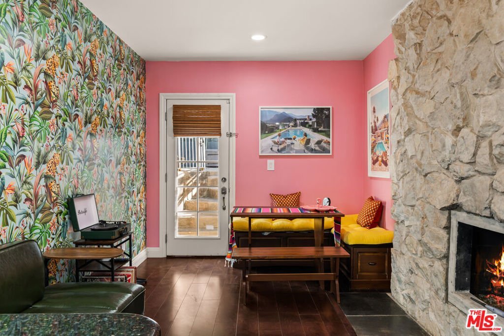 Welcome home to this stunning Mid-Century Modern retreat, perfectly situated south of the Boulevard! Step through the custom double doors into a breathtaking atrium featuring soaring 14-foot ceilings an ideal space for entertaining. Flooded with natural light, this impressive room showcases 36-inch-high double-pane windows, multiple skylights, and a dazzling Swarovski crystal chandelier.Behind you, the private primary suite offers a custom walk-through closet and a luxurious en-suite bath. The chef's kitchen boasts granite countertops, double wall ovens, stainless steel appliances, and a breakfast bar, seamlessly connecting to a cozy sitting area with a gas ice-stacked stone fireplace.Down the hall, you'll find two inviting guest bedrooms, perfect for family or visitors. Step outside to your own private oasis a large sparkling pool surrounded by terraced landscaping, a covered patio ideal for lounging or morning coffee, and an upper hilltop deck with sweeping city light and treetop views.Additional highlights include a spacious driveway, a two-car attached garage with a Tesla charger, and proximity to popular shops, restaurants, Whole Foods, Trader Joe's, Ventura Boulevard, and the 101 freeway.Experience the best of Woodland Hills living in this exceptional Mid-Century Modern masterpiece!
