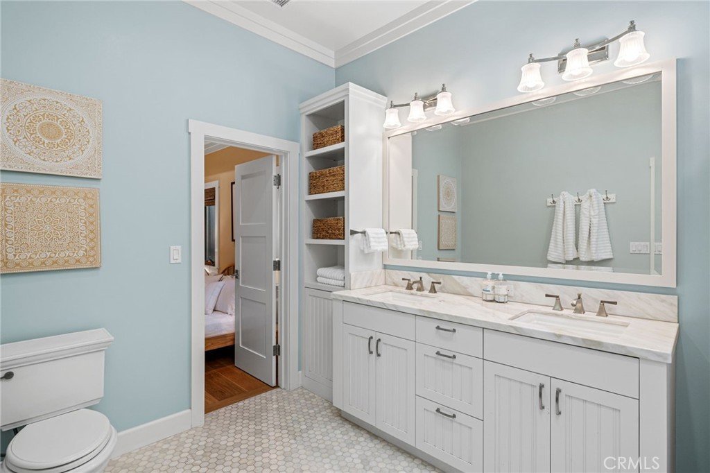 Coastal Living, Redefined — Two Distinct Homes in the Coveted Sand Section of North Hermosa Beach. An exceptional opportunity awaits just steps from the sand, Valley Park, and the vibrant energy of Pier Avenue. Situated on an expansive 6,251 sq ft lot in one of the most desirable pockets of North Hermosa Beach, this unique property features two beautifully crafted residences — a custom contemporary craftsman main home designed by the late Stan Anderson, and a charming mid-century modern back house offering privacy and versatility. The main home, built in 2013, showcases refined coastal style and offers 2,128 square feet of living space with 3 bedrooms, an office, two full bathrooms, and two half baths. Solid wood flooring, curated designer furnishings, and thoughtful architectural touches create a warm and elevated atmosphere throughout. The sun-drenched great room on the second level boasts vaulted ceilings, a cozy fireplace, and custom tri-fold doors that open to an expansive balcony — ideal for effortless indoor-outdoor living. The chef’s kitchen is a showstopper, featuring black soapstone countertops, a large island, custom cabinetry, luxury appliances, and a walk-in pantry. Off the living room is a small private office full of natural light. The serene primary suite offers a private retreat with a wrap-around balcony, spacious walk-in closet, and spa-like bathroom complete with heated floors, a soaking tub, and dual vanities. Downstairs, two additional bedrooms share a full bath and are anchored by a cozy den and built-ins, while the private backyard oasis is perfect for relaxing or entertaining under string lights by the fire pit. The two-car garage has ample storage and option to add EV charging. There’s additional two-car parking in the driveway. The back house, built in 1957, is a beautifully maintained 3-bedroom, 2-bath mid-century modern gem offering approximately 1,200 sq ft of living space. Enjoy the tranquility of a 1,500 sq ft private patio, your own laundry area, and dedicated off-street parking for two cars. With its own private walkway to the back house and ample separation from the main house, this is an ideal setup for extended family, guests, or rental income. A rare find in Hermosa Beach, this exceptional property blends timeless architecture, modern luxury, and a premier coastal location — creating the ultimate beachside lifestyle. *Property is also for lease.