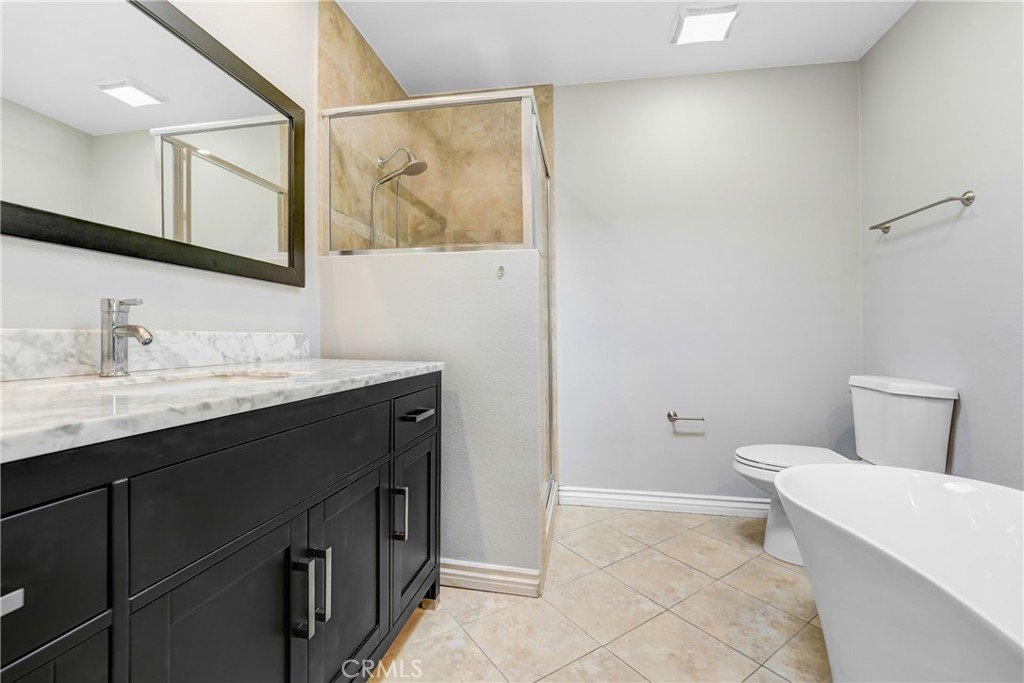 Welcome to this beautifully upgraded 3-bedroom, 2.5-bath townhouse offering 1,744 sq ft of bright, comfortable living in one of the community’s most desirable locations. This spacious unit features large front and rear patios, perfect for relaxing, entertaining, or enjoying the SoCal weather year-round. Inside, you’ll find an open and inviting layout with updated finishes throughout. The kitchen, dining, and living areas flow seamlessly, creating a warm and functional space for everyday living. One bedroom is conveniently located downstairs, ideal for guests, multi-generational living, or a private home office. Upstairs, you’ll find two additional bedrooms, including a well-appointed primary suite with walk-in closet for ample storage, along with the convenience of in-unit laundry located upstairs. All appliances are included, making this home truly move-in ready. This unit offers exceptional convenience, located just steps from the garage and the community pool, making daily living and recreation effortless. Residents enjoy a well-maintained community with HOA dues on the lower end, especially considering the extensive services covered. Monthly dues include water, sewer, sanitation, high-speed internet, cable TV, landscaping, janitorial services, pest control, community pool/spa/sauna, private rec room and exterior insurance. For added peace of mind, the community roofing was redone in early 2025. With its premium location, generous outdoor space, downstairs bedroom, in-unit laundry, and comprehensive amenities, this upgraded townhouse is the perfect blend of comfort, convenience, and value. Units in this complex are rare to come up. Hurry, don’t miss this opportunity!