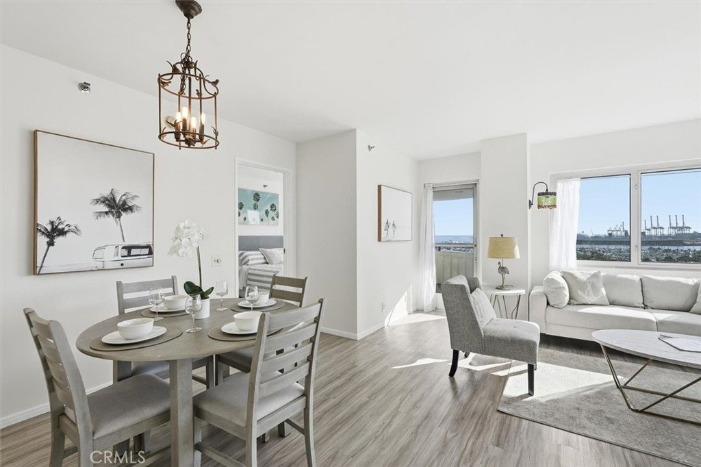 As you enter, you are welcomed by the bright, open-concept floor plan designed for effortless living and entertaining. The spacious living and dining areas are filled with natural light and showcase stunning views of the Pacific and the iconic Queen Mary. A private balcony provides the perfect setting to unwind and enjoy the ocean breeze. The kitchen is thoughtfully appointed with plenty of cabinetry, stainless-steel appliances, and a convenient breakfast bar for casual dining. The expansive primary suite is a true retreat, featuring dual mirrored closets, and a spa-inspired ensuite bath complete with a soaking tub, separate shower, and dual-sink vanity. A versatile second bedroom with custom office-style built-ins, an additional bath, in-unit laundry, and two tandem parking spaces. Residents of Harbor Place Tower enjoy resort-caliber amenities, including a sparkling pool and spa, outdoor fireplace lounge, built-in BBQs, promenade deck, fully equipped fitness center, sauna, and 24/7 security with lobby attendant. Ideally situated near the Long Beach Convention & Entertainment Center, the The Pike Outlets, Shoreline Village, miles of waterfront bike paths, acclaimed dining, boutique shopping, the beach, Metro access, and major freeways - this is luxury coastal living at its finest.