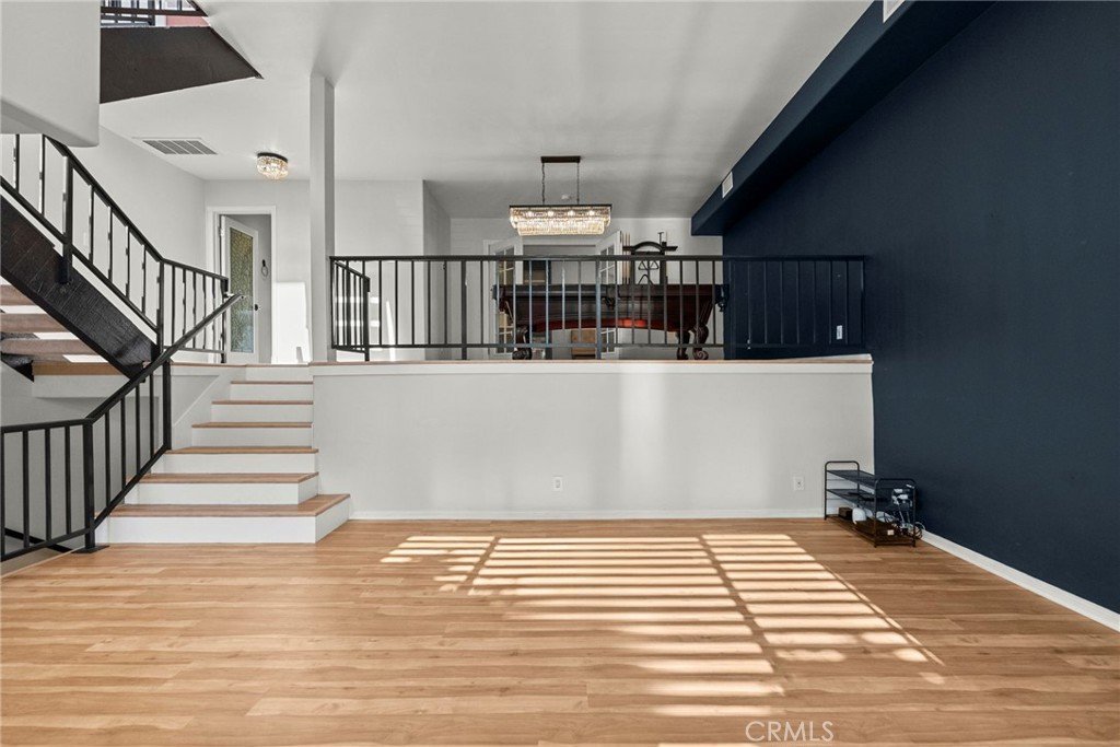 Upgrades & features: brand-new LVP flooring, updated kitchen and baths, $3,000 marble mosaic tile, new plantation blinds, new stair carpeting, smart-home controls, $10,000 earthquake retrofit paid, one shared wall, private entrance, split A/C units (2024), stainless appliances (approx. 2 years old), three crystal chandeliers, pool table, and a hidden door to the third bedroom.