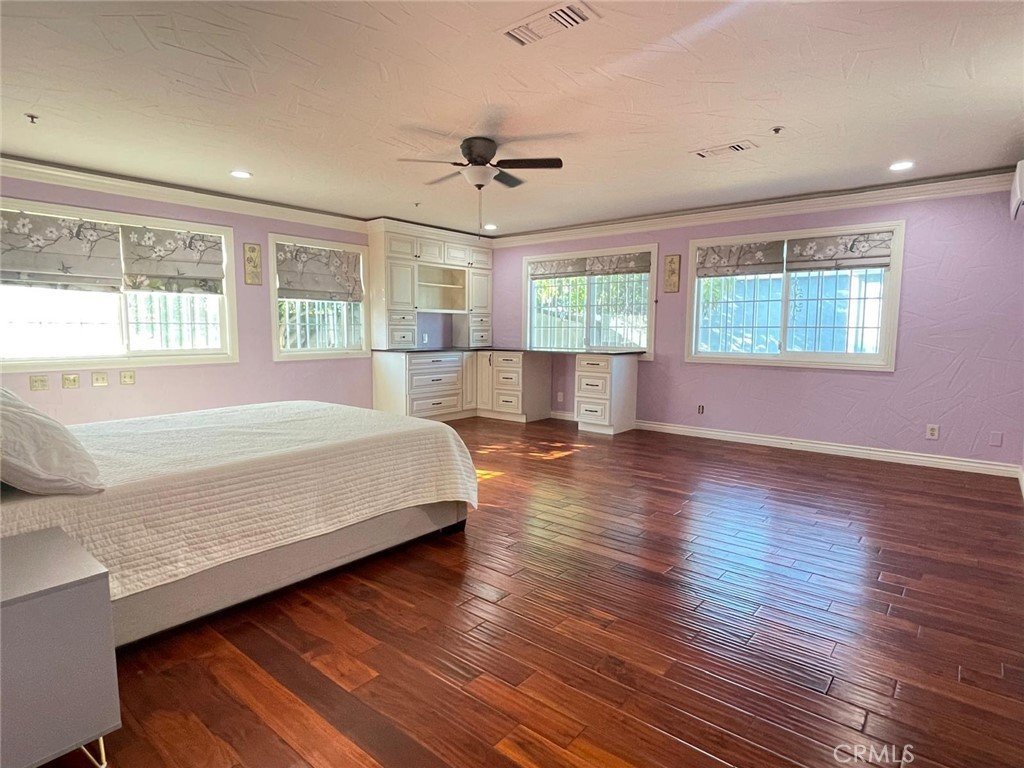 Spacious primary retreat with walk-in closet & custom cabinetry