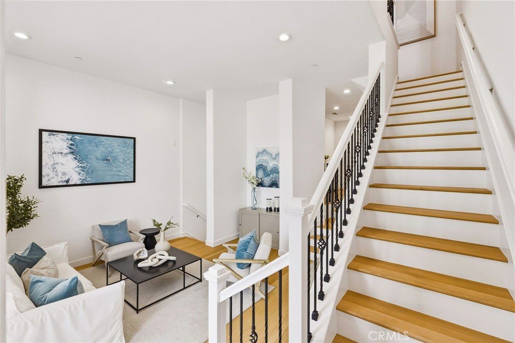 Stylish, turnkey living in the gated community of Fusion in the Hollyglen area of Hawthorne. This beautifully remodeled E floorplan 2-bedroom, 2.5-bath home offers a bright and airy, multi-level layout with thoughtful upgrades throughout, including new flooring, fresh paint, updated countertops, and modern fixtures. The main level features a welcoming living room, with the dining area and kitchen just a few steps up—creating a functional and open flow. The kitchen is outfitted with a new sink and faucet, along with stainless steel appliances. A convenient powder bath with a sleek, modern vanity completes the main living space. Upstairs, you’ll find two spacious bedrooms, each with its own en-suite bathroom. The spacious primary suite features dual sinks, a walk-in shower, and a large closet with built-in organization. The secondary bedroom includes a bathroom with a shower/tub combination. Convenient upstairs laundry and central A/C add to the home’s everyday comfort. A private garage with direct access offers two parking spaces and generous additional storage space beneath the home—perfect for keeping everything organized. Ideally located near the community park, residents also enjoy access to Fusion’s pool and jacuzzi—perfect for relaxing and entertaining.