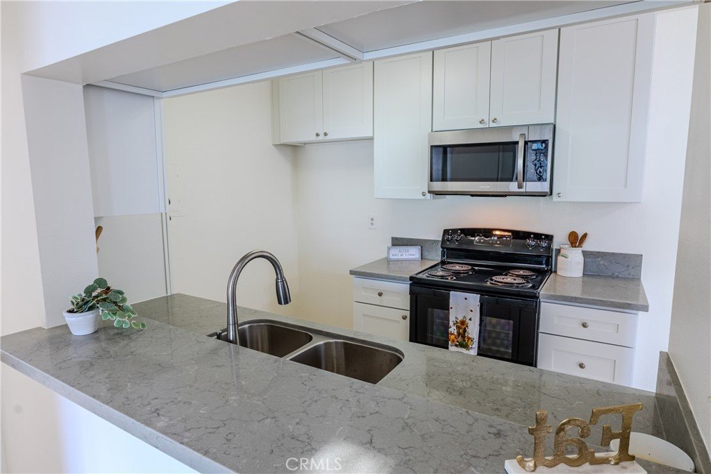 Inside, the home has been tastefully refreshed with new quartz countertops, brand-new kitchen cabinetry, a striking mix of tile and wood flooring, and two generously sized bedrooms. The oversized balcony extends the living space outdoors — ideal for morning coffee, evening unwinding, or simply taking in the views.