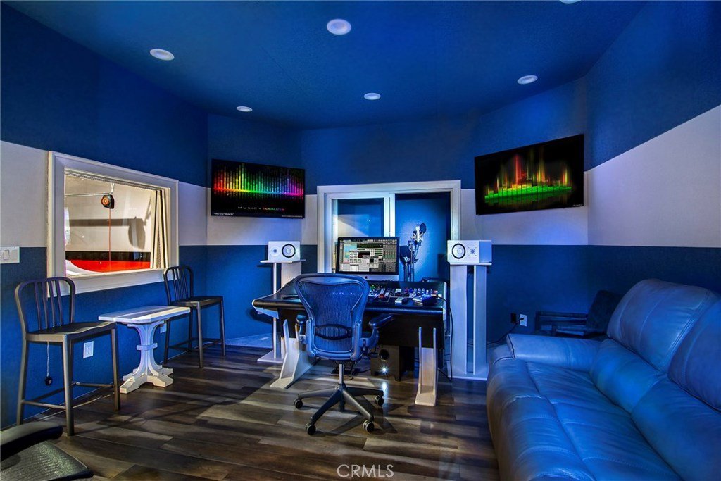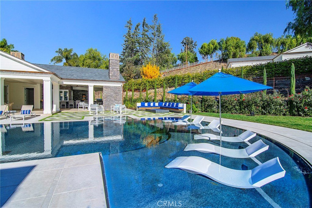 This exceptional custom estate presents a sophisticated French Country Modern sensibility that is both architectural and enduring. Thoughtfully designed and beautifully proportioned, the home offers a sense of quiet luxury rooted in quality and craftsmanship rather than trend. Upon entry, a dramatic foyer and adjoining sitting room create an exceptional arrival experience, highlighted by an illuminated bar with views across the pool. A gourmet kitchen opens seamlessly to an expansive family room, ideal for everyday living and entertaining. The layout continues with a game room with wet bar, private movie theater, custom paneled office, and a striking two-story gym filled with natural light, complete with a sauna and massage room. A discreet PRIVATE ELEVATOR serves the home, enhancing comfort across levels. The primary suite is a serene retreat featuring an all-stone bath, steam shower, sauna, and generous dual custom closets. Throughout the home, high-quality finishes, designer lighting, blackout window treatments, and custom closet systems reflect a thoughtful approach to luxury living. Recent enhancements include a whole-house water filtration system, upgraded HVAC, comprehensive security with cameras, and backup generators serving both the main residence and guest house. The grounds unfold like a private countryside escape, set across approximately 2.34 ACRES SPANNING TWO PARCELS, with mature landscaping, open skies, and a PERSONAL VINEYARD THAT ACTIVELY PRODUCES WINE, lending the property a true estate character. Outdoor amenities include an outdoor living room with fireplace, indoor-outdoor bar, pizza oven, BBQ center, fire pit, zero-edge pool with Baja entry, spa, and circular driveway with entry fountains. Music flows throughout the home via a high-quality sound system, complemented by an ultra-modern RECORDING STUDIO. A full GUEST HOUSE with second kitchen and private driveway offers exceptional flexibility, along with an additional seven-car garage. Square footage includes both the main residence and guest house. Ownership also includes access to the Hidden Hills lifestyle, offering guard-gated privacy, on-site security, miles of hiking and equestrian trails, riding arenas, tennis and pickleball courts, a community pool, recreation center, theater, and a strong sense of community within a private, pastoral setting. This one-of-a-kind Hidden Hills estate offers a lifestyle of understated luxury, privacy, and enduring elegance.