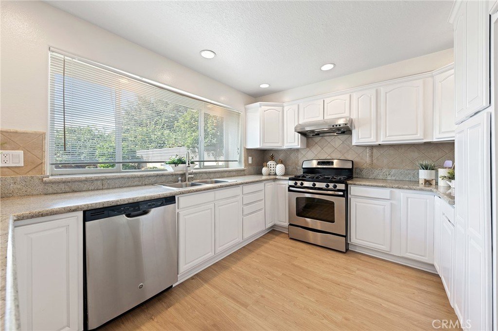 The remodeled kitchen offers abundant cabinetry, a pantry, and a large picture window overlooking the beautifully landscaped backyard. A charming breakfast nook with a bay window fills the space with natural light, while the formal dining room and convenient wet bar add to the home’s entertaining appeal.