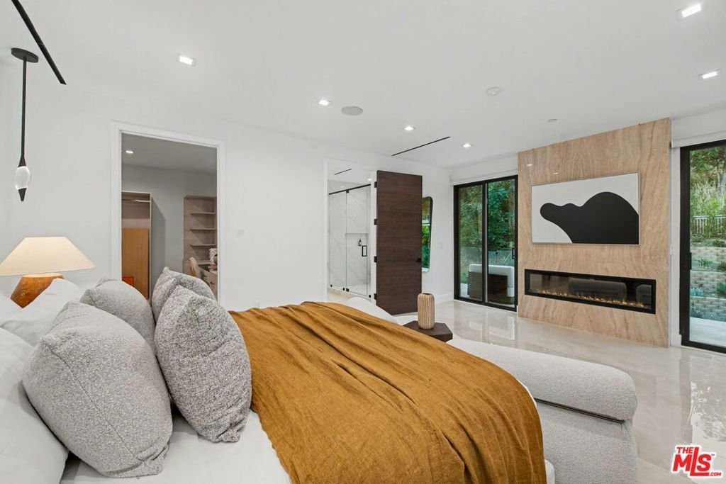 Welcome to this striking modern residence in the heart of Woodland Hills, where sleek architecture, smart home technology, and seamless indoor-outdoor living come together in perfect harmony. Privately gated and newer built, this thoughtfully designed home offers 3 bedrooms, 3.5 bathrooms, and a flexible layout ideal for both everyday living and elevated entertaining. Step inside to soaring ceilings and an expansive open-concept floor plan that effortlessly connects kitchen, living room, family room, and formal dining area. Walls of glass and disappearing pocket doors create a true indoor-outdoor experience, flooding the home with natural light while opening directly to the resort-style backyard. The outdoor space is a private oasis, featuring lush grassy areas, multiple seating and lounge spaces, and a stunning pool and spa with a tranquil waterfall feature. Entertain with ease in the fully equipped gazebo complete with dining area, built-in BBQ, and pizza oven perfect for hosting unforgettable gatherings year-round. The main level includes two spacious en-suite bedrooms along with a stylish powder room, offering comfort and privacy for guests or family. Upstairs, the primary suite serves as a true retreat, complete with a spa-like bathroom and an expansive walk-in closet. A separate upstairs space ideal as a home office, media room, or additional family lounge adds flexibility without being tied to the primary suite. Adding to the home's versatility, the current formal dining room was originally designed and approved as an en-suite fourth bedroom, offering the opportunity for an easy conversion back to a 4-bedroom, 4.5-bath layout upon buyer's request. Designed for modern living, the home is equipped with smart home features, clean contemporary finishes, and a cohesive aesthetic throughout. With its prime Woodland Hills location, gated privacy, and exceptional indoor-outdoor flow, this home delivers the perfect blend of luxury, functionality, and the California lifestyle.