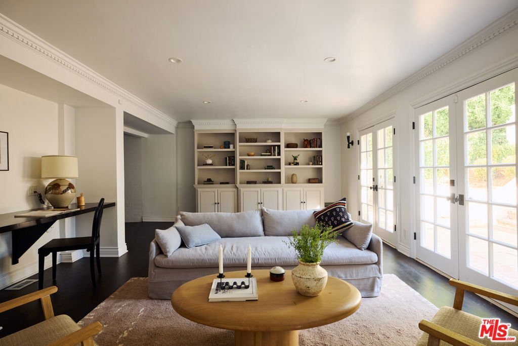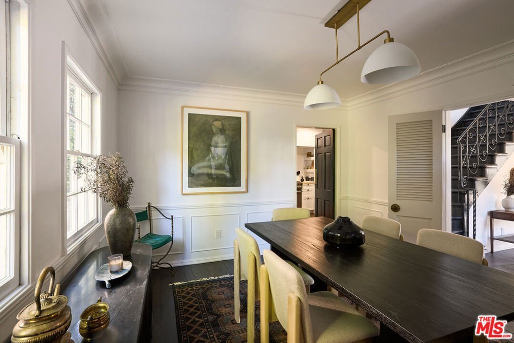 This beautifully restored 1939 Traditional home sits on a charming street in the Los Feliz Oaks, one of the most coveted neighborhoods. Designed by renowned designer Estee Stanley, the home blends timeless character with thoughtful, modern updates. The main level features a bright and welcoming living room with a marble fireplace, and a formal dining room that opens to a fully equipped kitchen with marble countertops, a farmhouse sink, and a spacious pantry. The comfortable family room includes a built-in desk and bookcase, a fireplace, and French doors that open to the backyard and pool, creating an easy flow between indoor and outdoor living. Upstairs, the primary suite offers a generous walk-in closet and a serene bath with marble floors and an oversized tub. A second primary suite and two additional bedrooms sharing a hall bath complete the upper level. Outside, a peaceful garden patio leads to the terraced pool and spa, surrounded by mature trees that provide privacy and a lush, tranquil backdrop.