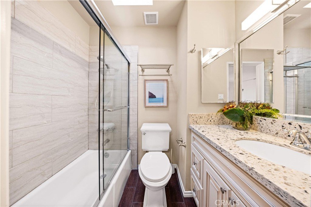In the heart of Arcadia, the long favored by established residents for its balance of convenience, education, and lifestyle, this residence offers a rare blend of architectural comfort and everyday sophistication. The city is known for its top-tier school district, abundant Asian markets, diverse dining scene, and seamless access to major corridors, creating a setting where quality of life and practicality intersect naturally. The home itself spans approximately 1,842 square feet and is thoughtfully designed with three private suites plus a guest powder room, ideal for modern living and long-term flexibility. Upon entry, the living area immediately impresses with soaring ceilings and an abundance of natural light, creating a sense of openness and calm. A full renovation completed in 2017 elevated the interior with new hardwood flooring, dual-pane windows and sliding doors, a redesigned kitchen, and updated bathrooms, newer HVAC system, delivering both aesthetic refinement and functional efficiency. What distinguishes this residence is its exceptional flow and connection to outdoor space. The layout is bright, airy, and intuitive, with multiple skylights placed throughout the home, allowing sunlight to filter in from every angle and creating a tranquil, healing atmosphere. The front courtyard and two of the suites extend directly to balconies and exterior areas, seamlessly blending indoor and outdoor living. From the private rooftop, one can enjoy elevated views of the surrounding community and distant mountain lines—an inviting retreat for morning coffee, sunset reflections, or quiet evenings under the sky. Each suite is well-proportioned, offering privacy, comfort, and versatility for family members, guests, or home office needs. The home’s transparency, ceiling height, and intelligent configuration enhance both daily living and long-term value. Set within a peaceful corner of the community, the property benefits from exceptional privacy and lush landscaping, surrounded by mature trees and greenery. Residents enjoy access to a resort-style pool and clubhouse, further enhancing the lifestyle experience. The environment is calm, refined, and beautifully maintained—an ideal complement to the elegance of the home itself. This is not simply a place to live, but a thoughtfully curated setting where light, space, and location come together in one of Arcadia’s most enduringly desirable environments.