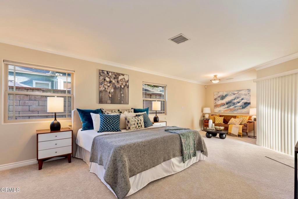 Thoughtfully Designed for Modern Living Set within a well-established Whittier neighborhood, this home features a perfect blend of charm and contemporary comfort. The home unfolds with a sense of warmth and intention. The light-filled interiors enhance both the expansive scale and flow. This spacious and beautifully designed single level home was built in 2002.With soaring ceilings and expansive rooms, the thoughtfully designed home is dramatic yet inviting. Featuring 4-bedrooms, 2.5 baths, it is a blend of open, airy design with modern convenience.The living areas flow effortlessly creating the ideal setting for both relaxed everyday living and elegant entertaining. Carefully curated furnishings highlight the home's proportions, natural light and versatility. Each area feels purposeful and refined. The main rooms feature 18' ceilings, creating light-filled spaces that are expansive and inviting. Each room feels purposeful and refined. The living room opens to the spacious dining room which blends with a den area. The adjacent family room, anchored by a cozy fireplace, opens onto the large covered patio, perfect for alfresco dining. The breakfast bar opens to the large kitchen- complete with its own high ceilings with abundant cabinetry on both sides. The home's floor plan offers two separate bedroom wings both for privacy and flexibility. On one side is the primary suite, which features a private retreat area that opens onto the rear patio. There are dual walk-in closets and a spacious bath with dual sinks and a handicap-accessible soaking tub. The secondary bedroom on this wing offers the option for a home office. The guest bath has direct access to the rear yard. There is an indoor laundry and hall closet. The secondary wing features two additional bedrooms and a full bathroom. There is a separate linen cabinet in the hallway. A surprise bonus is a large attic, accessible via pulldown stairs, which offers incredible storage. Fresh paint and brand-new carpeting throughout make this home truly move-in ready. The enclosed rear yard features two private outdoor spaces to relax, garden, or entertain.Spacious design, modern convenience and timeless appeal.