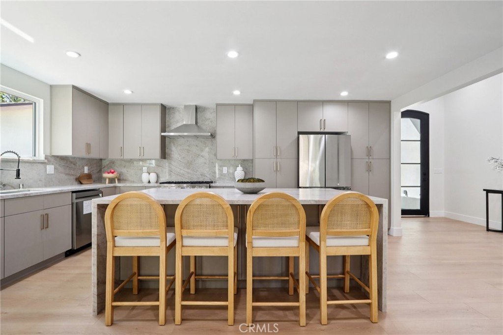 Nestled on a quiet cul-de-sac in the highly sought-after Valley Glen neighborhood, this newly remodeled pool home is the epitome of modern luxury and thoughtful design. No expense has been spared, with the seller investing hundreds of thousands in high-end upgrades throughout. Step inside through a striking modern wrought-iron entry door into a welcoming formal foyer that opens to a bright, expansive floor plan. Boasting 4 spacious bedrooms and 3 beautifully designed bathrooms across approximately 2,050 square feet, this home offers both comfort and sophistication. The expansive family and dining areas flow seamlessly into a one-of-a-kind chef’s kitchen, designed to impress. Featuring a large center island, sleek custom cabinetry, elegant countertops, and premium stainless steel appliances, this space is perfect for both everyday living and entertaining. The luxurious primary suite serves as a private retreat, complete with a generous walk-in closet and a beautiful en-suite bathroom showcasing a modern vanity and a stunning floor-to-ceiling walk-in shower. Step outside to your own entertainer’s paradise. The beautifully finished covered patio overlooks a sparkling pool, creating the perfect setting for gatherings or relaxing summer days. Additional highlights include wide-plank laminate flooring, recessed lighting throughout, custom designer interior doors, dual-pane windows, copper plumbing, and a brand-new roof—ensuring both style and peace of mind. Ideally located just minutes from Sherman Oaks and the vibrant NoHo West shopping and dining destination, this exceptional home offers the perfect blend of luxury, convenience, and lifestyle.