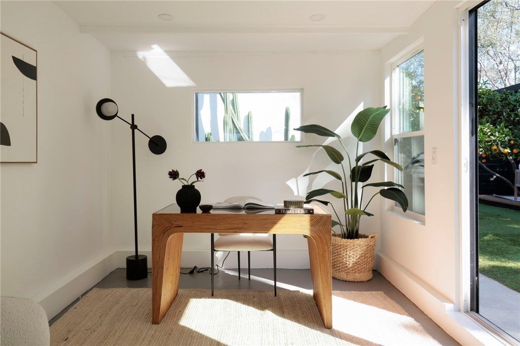 The updated kitchen flows seamlessly into the dining and living areas—perfect for entertaining. The primary suite features French doors opening to a serene, lush yard, creating effortless indoor/outdoor flow.