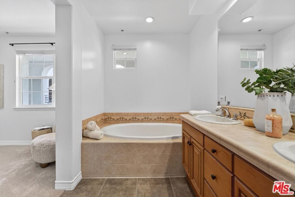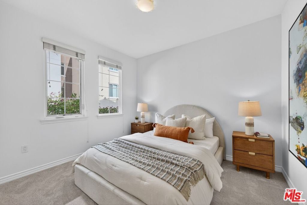 Immaculately maintained and updated top-floor, two-story condo in the coveted Villa d'Este community. Located in the heart of Playa Vista, this 3-bedroom residence offers vaulted ceilings, fireplace, and an open living/dining area. The remodeled kitchen features quartz countertops, updated cabinets with ample storage, under-cabinet and recessed lighting, and premium Bosch/LG stainless steel appliances. An adjacent breakfast area provides flexible space for casual dining or a home office. The upper level also showcases new LVP flooring and a renovated powder room. All three bedrooms are privately located on the lower level with a laundry room nearby. The spacious primary suite includes a walk-in closet and bath with soaking tub and separate shower. Additional upgrades include dual Nest thermostats with two separate HVAC systems, and a newer water heater. Enjoy the convenience of two side-by-side parking spaces near the elevator, each with EV charging (Tesla app-connected charger and dedicated 240V outlet on private meter), along with extra storage. Villa d'Este is an intimate community with only 39 units, inspired by Italianate architectural style, and features tiled walkways, colorful bougainvillea, central courtyards, and an outdoor fireplace lounge area. Just across the street from the CenterPointe Club, and short distance to The Resort gym/pool, Whole Foods, multiple restaurants, Cinemark theater, many community parks, and Playa Vista Elementary.