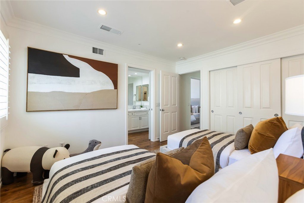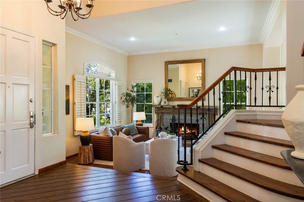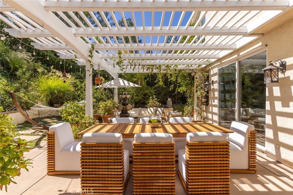 Welcome to 5985 Vista De La Luz, an exceptional retreat in the prestigious Valley Circle Estates neighborhood of Woodland Hills. Located within a highly-desired community served by award-winning schools, this residence offers an ideal blend of elevated design, privacy, and location. Offering 4 bedrooms, 3.5 baths, and 2,658 sq ft on a generous 0.27-acre lot, the home is filled with warmth, light, and character. Custom exposed ceiling beams and striking fireplace mantles crafted from authentic 18th-century barnwood create a rich architectural statement, blending timeless craftsmanship with modern comfort. The downstairs office features custom built-in cabinetry, providing both beauty and functionality for today’s work-from-home lifestyle. Thoughtfully designed living spaces flow effortlessly for both intimate evenings and lively gatherings. The spacious primary retreat serves as a private sanctuary, complete with vaulted ceilings, its own cozy fireplace, and a generous walk-in closet. The spa-like primary bath offers a jetted soaking tub, separate shower, and refined finishes designed for relaxation and rejuvenation. The true magic unfolds in the backyard oasis — a private sanctuary framed by lush greenery and open skies. Enjoy evenings gathered around the firepit, unwind in the hot tub beneath the stars, or relax in the charming gazebo as weekend entertaining flows seamlessly from indoors to nature’s embrace. It is a setting designed not just for living, but for unforgettable moments. With nearby hiking trails weaving through the scenic Santa Monica Mountains, adventure and tranquility are always close at hand. Built in 1995, this home offers modern convenience wrapped in romantic charm — a rare blend of craftsmanship, comfort, and refined California living in the heart of Woodland Hills.