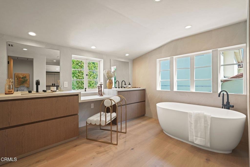 Discover the ideal blend of modern luxury and historic grandeur at 620 South Allen Ave. Set in San Marino's exclusive Huntington Library District, this distinguished Spanish Colonial Revival estate--originally designed by renowned architect Everett Phillips Babcock--has been masterfully reimagined through a meticulous, multi-year, ground-up renovation completed in 2025. The home has been extensively improved at the infrastructure level, including a new roof, all-new electrical and plumbing systems, new HVAC, insulation, and re-finished windows. Thoughtfully integrated smart-home enhancements include Nest climate control, two high-speed EV charging stations, and a pre-wired security system with CCTV, offering both comfort and peace of mind. Inside, a curated palette of sumptuous finishes defines the living experience, including engineered white oak flooring, imported Italian porcelain tile, bespoke lighting, and custom Italian cabinetry throughout. Designed for both everyday living and elegant entertaining, the chef's kitchen serves as a true centerpiece--appointed with Italian marble countertops, fully integrated Sub-Zero refrigeration, a Wolf 48-inch cooktop with double ovens, and a generous walk-in pantry. The home offers five en suite bedrooms, including a main-level guest suite and four additional bedrooms upstairs. The primary suite is a private retreat of exceptional scale, featuring a custom-built walk-in wardrobe and a spa-inspired bath finished to the highest standard. Set on approximately three-quarters of an acre, the grounds have been reimagined to evoke a private resort setting. Enhancements include new hardscaping, professionally designed landscaping, and a new front yard, backyard, driveway, courtyard, and garage. Outdoor amenities include a refinished championship tennis court with lights, a rebuilt pool and spa with new app-controlled equipment, and Trex composite decking for seamless indoor-outdoor living. A detached guest house includes a 3/4 bath, providing flexible space for guests, a home office, or recreation. The extra-wide circular driveway, off Allen Ave, is spacious enough to comfortably fit 2 cars side by side while a second driveway, off California Blvd, provides added convenience. A rare offering, this 1925 estate captures the romance of its architectural lineage while delivering the sophistication, comfort, and turnkey ease of a newly constructed home.