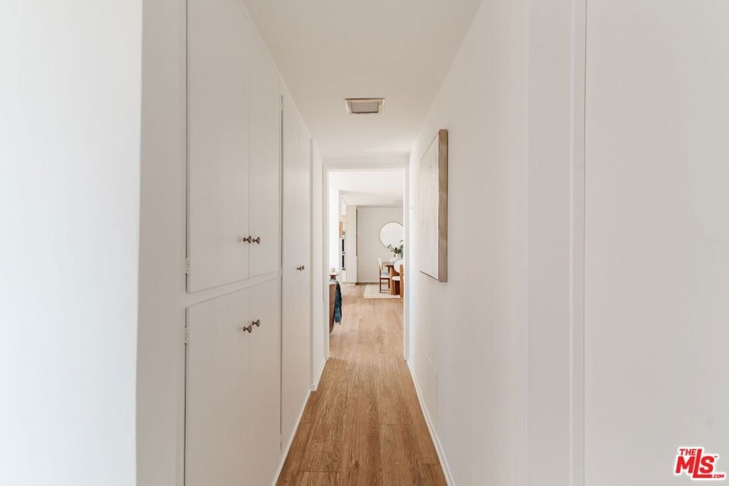 Stunning top-floor corner residence in the heart of Valley Glen, offering 2 bedrooms, 2 bathrooms, and sweeping views of LA's iconic palm-tree dotted skyline and the hills beyond. Inside, an open floor plan creates effortless flow, ideal for both everyday living and entertaining. The spacious living room features sliding glass doors that open to a large private balcony -- the perfect perch for morning coffee or sunset unwinding. The living area flows seamlessly into a dedicated dining space with built-ins, and a well-appointed cook's kitchen complete with double ovens, stove, dishwasher, and refrigerator. Down the hall, two generously sized bedrooms await. The expansive primary suite includes a large walk-in closet and an ensuite bath with dual vanity and renovated shower. A spacious second bedroom -- ideal for guests or a home office -- along with a hall bath and ample storage closets complete the interior. This charming three-story building offers desirable amenities including a pool, BBQ area, secured entry, elevators, and convenient on-site laundry on every floor. The unit includes one covered parking space within the community's gated parking area, plus a dedicated storage unit. Located just moments from shopping, theaters, restaurants, and Valley Glen Community Park, with easy freeway access, this top-floor retreat offers both tranquility and exceptional convenience. Welcome home!