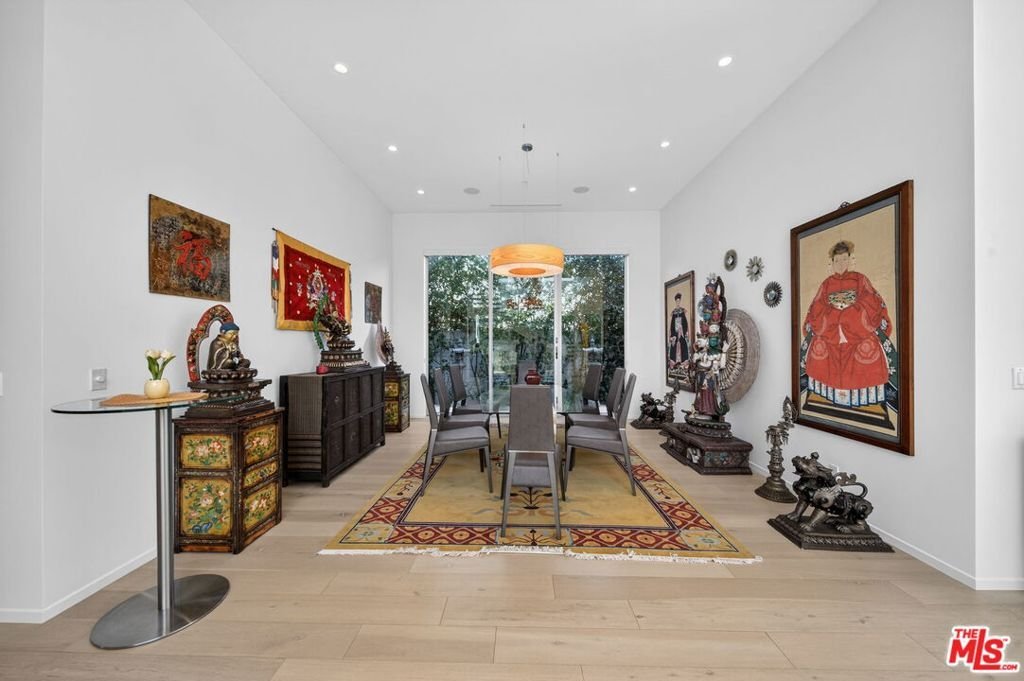 Stunning Contemporary Architectural in Prime Beverly-Grove Location. Built in 2014 with exceptional craftsmanship and the finest materials, this striking 2-story contemporary residence offers 4 bedrooms and 4 bathrooms, blending modern design with effortless indoor-outdoor living. Dramatic 12-foot ceilings, expansive floor-to-ceiling pocket sliding glass doors fully retract to open the entire back of the house, creating a true indoor-outdoor living experience ideal for entertaining. Luxury wide-plank, solid hardwood floors throughout. A stunning architectural focal point, the floating staircase is set within a breathtaking 2-story atrium, enhanced by designer pendant lighting by David Trubridge, delivering both elegance and architectural presence to the space. The chef's kitchen is a showpiece, featuring a professional Scavolini designed cabinetry, premium Miele appliances, and a large center island. Open to the expansive living room with a gas fireplace, the space is thoughtfully designed for both everyday living and seamless entertaining. Pianca custom Italian closets are featured throughout, offering refined and functional storage. The primary suite serves as a private retreat, complete with a spa-inspired bathroom featuring a soaking tub, glass-enclosed shower and custom Adatto Casa Italian cabinetry. Enjoy multiple outdoor living spaces, including north-facing terraces with views of the Hollywood Hills and a south-facing terrace overlooking the Wilshire corridor. A private jacuzzi splash pool enhances the outdoor experience, ideal for relaxing or hosting. Additional features include a 2-car attached garage and modern systems throughout. Ideally located just moments from The Grove, Beverly Center, 3rd Street shops, the Academy Museum, LACMA, the Petersen Automotive Museum, and the new Fairfax/Wilshire Metro Station placing the very best of Los Angeles at your doorstep.