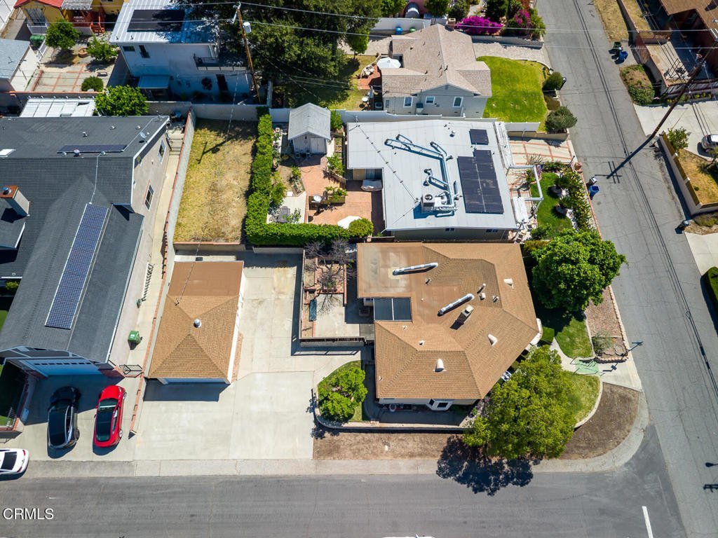 Charming 1940 Traditional on Corner Lot with Additional Parcel & Detached Garage/Workshop. Looking for the right artist to reimagine this 1940 home. Nestled near the mountains on a desirable corner lot, this inviting 3-bedroom, 2-bathroom home blends classic character with everyday comfort. Offering approximately 1,687 square feet of living space, the home features a spacious living room with a wood-burning fireplace with gas starter, tile hearth, mantle, built-in shelving, and a cozy alcove ideal for a home office or reading nook. The dining area is highlighted by charming bay windows, while the kitchen includes maple cabinetry, tile countertops, gas cooktop, built-in oven, microwave, dishwasher, disposal, refrigerator, and ceiling fan. A separate laundry area includes washer and dryer, along with an electric water heater. The home offers two bathrooms--one with a shower and one with a tub--and three well-proportioned bedrooms. Additional features include mostly dual-pane windows, central HVAC, and classic wood siding. The property spans a total of approximately 8,220 square feet across two parcels, including a 5,371 square foot main lot and a separate 2,849 square foot lot. The detached two-car garage with automatic door opener includes a workshop area, offering excellent potential for storage, hobbies, or possible future use. Front and rear lawns, mature fruit trees, and the corner location enhance the outdoor appeal of this unique property.