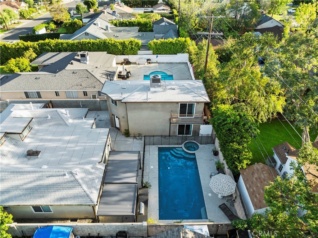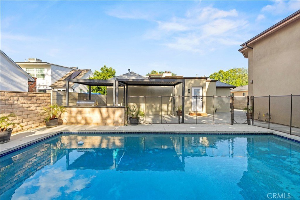 Get ready to be blown away by this incredible find in the heart of Valley Glen! Stunning classic bungalow style home with a private pool and a separate ADU, offering a total of 3 bedrooms, 2.5 bathrooms in the main house, and 2 bedrooms, 2 bathrooms in the ADU. The main house boasts hardwood floors, two indoor fireplaces, beautiful wood beam ceilings, and an updated granite kitchen that opens from a wainscoting formal dining room. The cozy family room, complete with built-in shelving, leads to a bright breakfast room with French windows overlooking the expansive backyard - perfect for entertaining! Featuring upgraded marble bathrooms, inside laundry, and additional rooms upstairs for an office, den, or playroom, this home offers both elegance and versatility. Enjoy the front yard's privacy wall of ten-foot tall privets and the oversized backyard with a covered patio and an Amazing BBQ area. The meticulously crafted ADU is done with quality in mind, offering a space that is both functional and stylish.