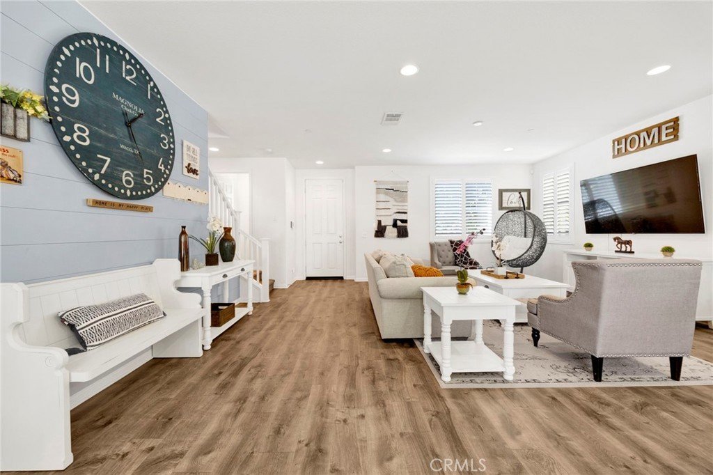 Do not miss a rare opportunity to own in this exclusive, gated West Hills community, built in 2017, where homes seldom come on the market—true pride of ownership throughout, original owners spared no expenses on upgrades! Welcome to this beautifully upgraded modern smart home with a bright open-concept design, offering 4 bedrooms, 3.5 baths and a direct-access attic space, offering flexibility as a craft/hobby room, or ample storage. The main floor features a full bedroom with en-suite bathroom, ideal for guests or multigenerational living, a powder room, a bright and airy living room with a shiplap accent wall, and the gourmet kitchen, the heart of the home, showcasing an expansive quartz center island and countertops, included modern stainless steel appliances, with plenty of cabinet storage and counter spaces creating a functional and seamless flow into the living, dining, and outdoor patio areas—perfect for entertaining. The second floor features a master suite, loft, two spacious bedrooms, and utility room with sink and included washer and dryer. Throughout the home, there are custom plantation shutters, recessed lighting, paneled closet doors, walk-in closets, modern laminate flooring, and upgraded carpeting for additional comfort. Step outside to a serene, partially covered patio area, featuring a feng shui water element, wall-to-wall planter areas with automatic sprinkler hookups, and green turf, creating the perfect ambiance for relaxation or entertainment. The HOA maintains a community park, BBQ and picnic area, adding to the neighborhood’s appeal.