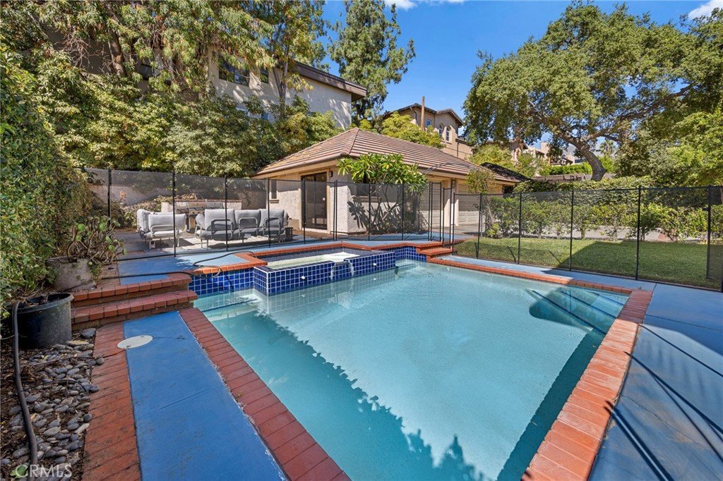 Welcome to this exceptional custom-built residence, perfectly situated in one of Pasadena’s most coveted locations. Just moments from Caltech, Polytechnic School, and the vibrant South Lake shopping and dining district, this stunning three-level home offers the perfect blend of comfort, elegance, and convenience. Recently upgraded with over $200,000 in improvements—including a brand-new roof, new flooring, and fully remodeled bathrooms—this 6-bedroom, 4-bath home is move-in ready. Step inside to a beautifully lit, step-down living room with expansive views of the landscaped front yard. Entertain with ease in the formal dining room or the oversized family room, complete with a custom-built entertainment center and fireplace. The spacious kitchen is a chef’s delight, featuring modern appliances, countertop seating, and an adjoining everyday dining area. Upstairs, the private master retreat offers a serene escape, while the versatile second-floor layout includes a sitting area, a home office, and a billiards room with its own wet bar and bathroom. The third-floor loft provides endless possibilities—whether as a playroom, gym, or yoga studio. The backyard is a true oasis, showcasing a newly plastered and tiled pool with jacuzzi, a covered patio perfect for outdoor gatherings, and a pool house with its own 3/4 bath. A long driveway leads to the impressive 3-car garage, offering ample parking and storage. This rare Pasadena masterpiece combines timeless design with modern upgrades in an unbeatable location. Don’t miss the opportunity to make it YOURS!