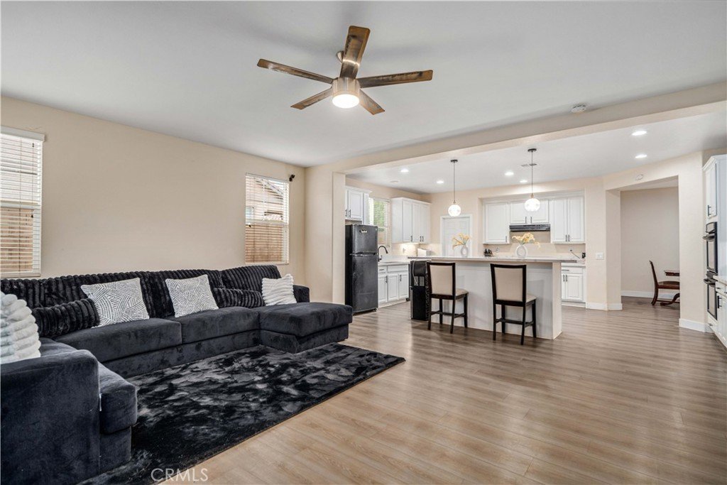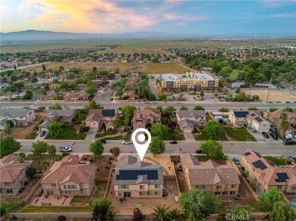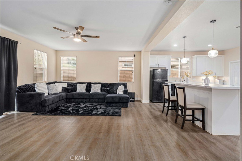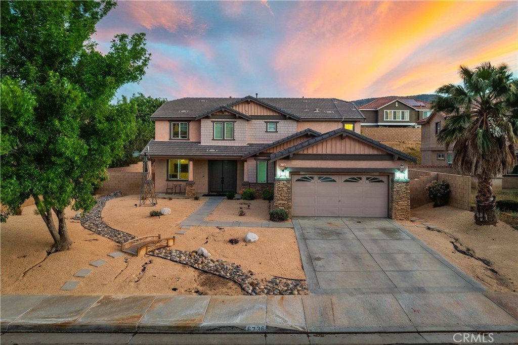 Stunning Two Story Palmdale Home with a Modern Upgraded Interior! Welcome to this beautifully upgraded residence that blends comfort and contemporary style. Enter through grand double doors into a striking foyer with cathedral ceilings and a chandelier that creates a memorable first impression. Recessed lighting and upgraded flooring carry throughout the home, leading into a spacious living area designed for both everyday living and entertaining. The kitchen features quartz countertops, white cabinetry, pendant lighting, bar seating, and a large center island, and opens seamlessly to the family room with a fireplace and a formal dining space. The main level also includes a bedroom and full bathroom, ideal for multi generational living or guests. Upstairs, a large loft offers flexible space for a media room, office, or play area and connects to the primary suite. The primary bathroom includes dual vanities, quartz countertops, a soaking tub, a glass walk in shower, and a walk in closet, while the secondary bathroom also features dual vanities for added convenience. The front yard showcases drought tolerant landscaping with decorative rock accents and a charming wooden bridge, and the expansive backyard provides plenty of room for entertaining, relaxing, or creating your ideal outdoor space. This home offers a thoughtful layout with modern upgrades and inviting spaces throughout. This Modern Upgraded Palmdale home is truly a must-see! Schedule your private tour today and experience this remarkable property for yourself!