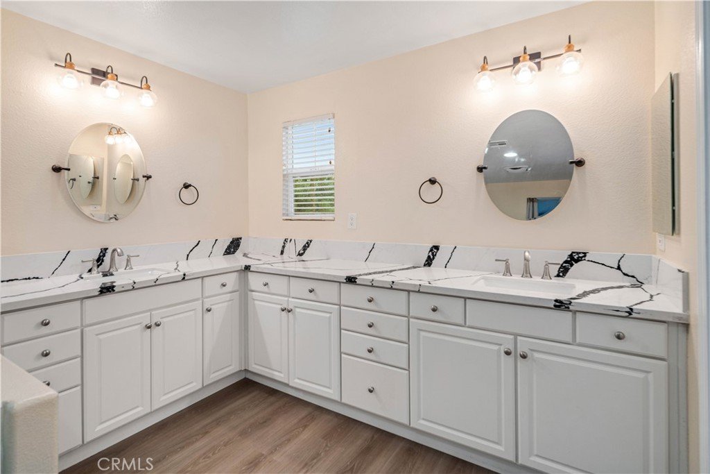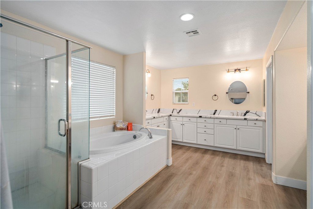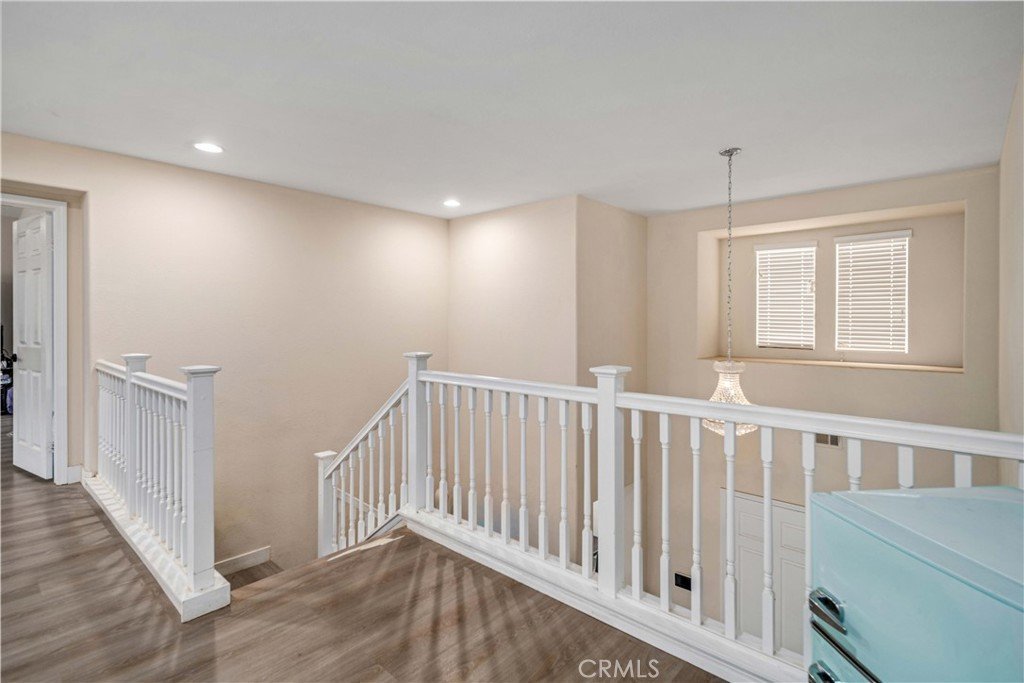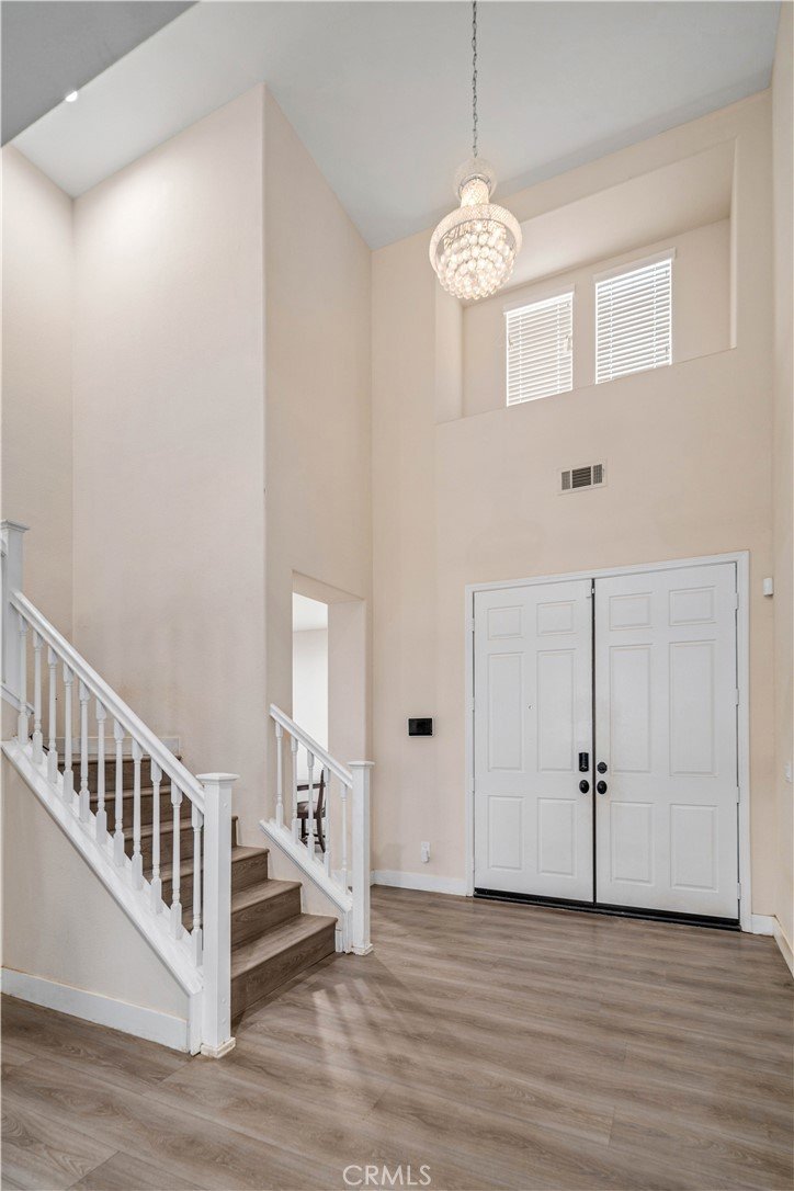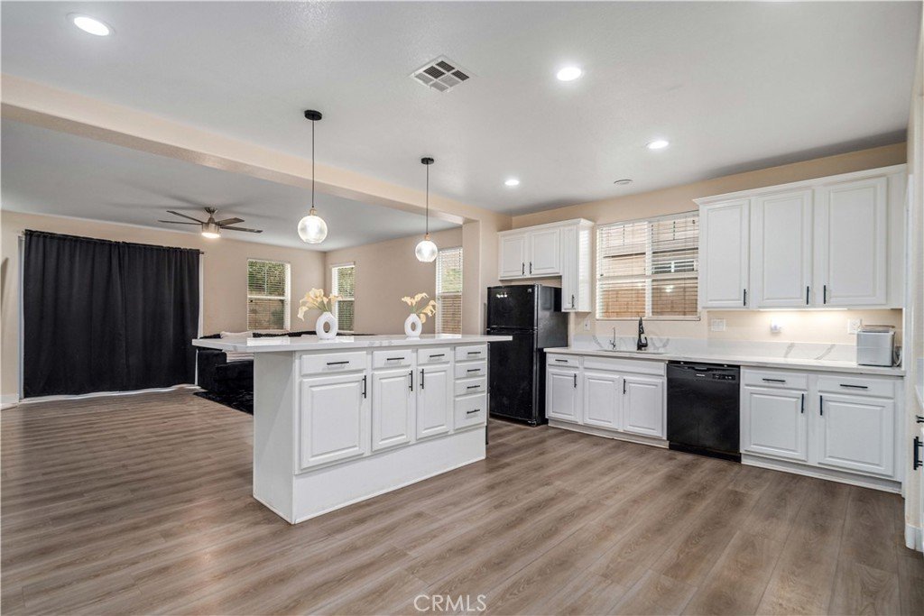 Stunning Two Story Palmdale Home with a Modern Upgraded Interior! Welcome to this beautifully upgraded residence that blends comfort and contemporary style. Enter through grand double doors into a striking foyer with cathedral ceilings and a chandelier that creates a memorable first impression. Recessed lighting and upgraded flooring carry throughout the home, leading into a spacious living area designed for both everyday living and entertaining. The kitchen features quartz countertops, white cabinetry, pendant lighting, bar seating, and a large center island, and opens seamlessly to the family room with a fireplace and a formal dining space. The main level also includes a bedroom and full bathroom, ideal for multi generational living or guests. Upstairs, a large loft offers flexible space for a media room, office, or play area and connects to the primary suite. The primary bathroom includes dual vanities, quartz countertops, a soaking tub, a glass walk in shower, and a walk in closet, while the secondary bathroom also features dual vanities for added convenience. The front yard showcases drought tolerant landscaping with decorative rock accents and a charming wooden bridge, and the expansive backyard provides plenty of room for entertaining, relaxing, or creating your ideal outdoor space. This home offers a thoughtful layout with modern upgrades and inviting spaces throughout. This Modern Upgraded Palmdale home is truly a must-see! Schedule your private tour today and experience this remarkable property for yourself!