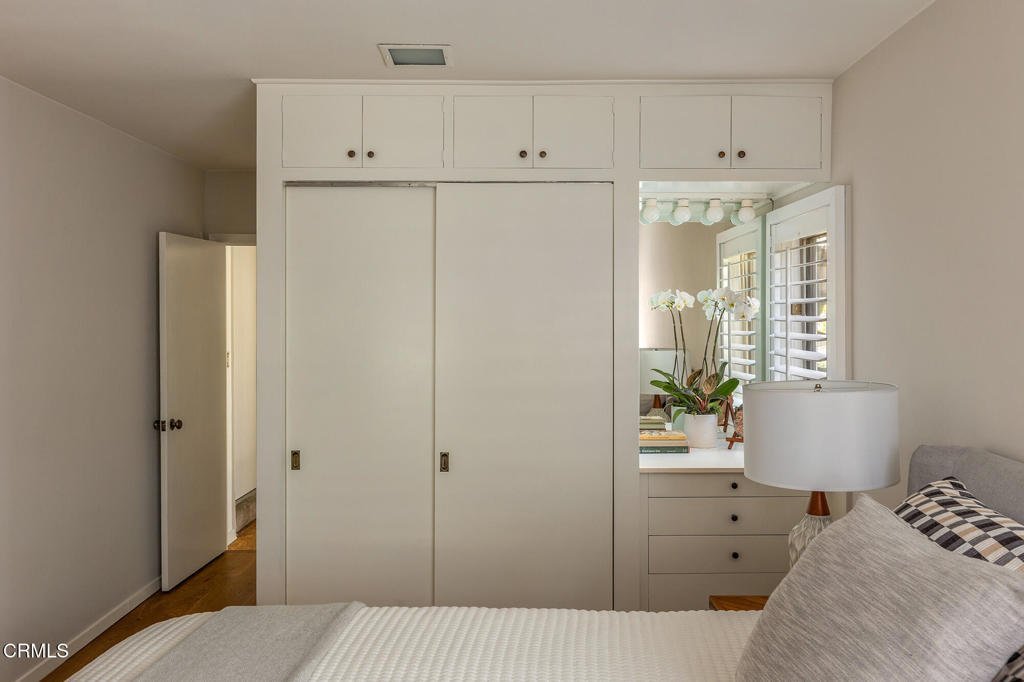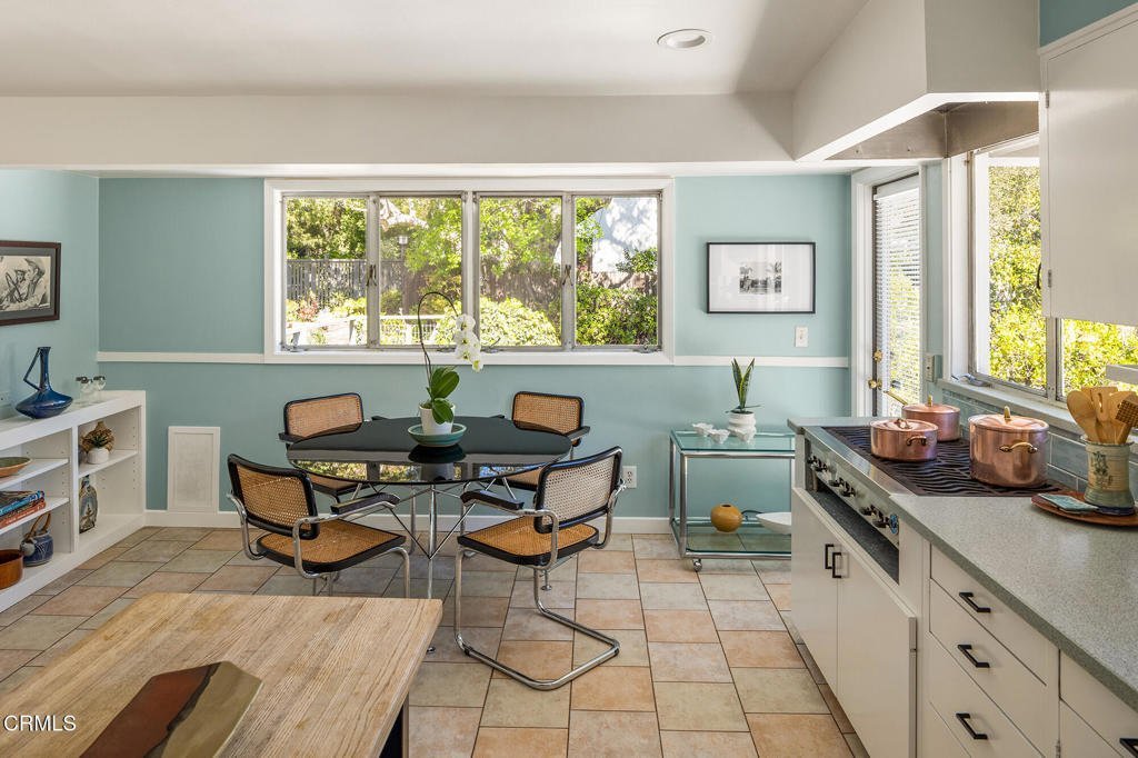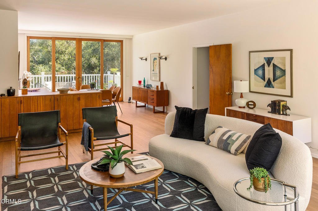 The Stromberger Residence, 1948, Henry Eggers, FAIA., Garret Eckbo, FASLA, Hahn and Hoffman, Landscape Architects. Described by the Pasadena Star-News in 1953 as 'a contemporary home with a quota of indoor-outdoor living,' the Stromberger residence remains a compelling study in postwar California modernism.Located on the west side of the Arroyo, the property occupies a mostly flat, nearly three-quarters-of-an-acre parcel across two parcels -- a rare landholding in an increasingly urbanized setting. Settled by Midwestern farming families who regarded the Linda Vista area of Pasadena as paradise, the neighborhood still retains a sense of that rural sensibility: broad skies, mature oak canopies, and views to the San Gabriel Mountains. Fireworks from the Rose Bowl punctuate summer evenings -- a distinctly Pasadena ritual set against a landscape that once drew naturalists like John Muir in the late nineteenth century.The house itself is a thoughtful hybrid of Contemporary and Ranch influences. Its low-pitched roofline and overhangs evoke the Hacienda and California Ranch traditions, while two massive sliding glass doors dissolve the boundary between interior and exterior. Light -- at any time of day -- enters in shifting planes, animating surfaces and softening corners.Inside, the living and dining rooms are clad in warm Habillo wood, creating a textural envelope that feels both modern and organic. Peg-and-groove hardwood floors ground the interiors with quiet craftsmanship. The plan is practical yet flexible: two bedrooms on the main level and an additional bedroom below, with two bathrooms, one per floor -- a configuration that balances privacy and adaptability.A mostly flat rear yard offers uncommon scale and usability. A trapezoid-shaped pool -- a distinctly mid-century gesture -- anchors the recreational axis of the property. There is a poolhouse with two changing rooms and a half bath, reinforcing the home's original commitment to leisure and outdoor living. Towering oak trees create dappled shade canopies, filtering the Southern California sun and reinforcing the dialogue between architecture and site.Surveyed as a City of Pasadena landmark, the residence stands not simply as a house, but as part of a larger architectural narrative--one that reflects the optimism of postwar California and the enduring appeal of indoor-outdoor modern living.