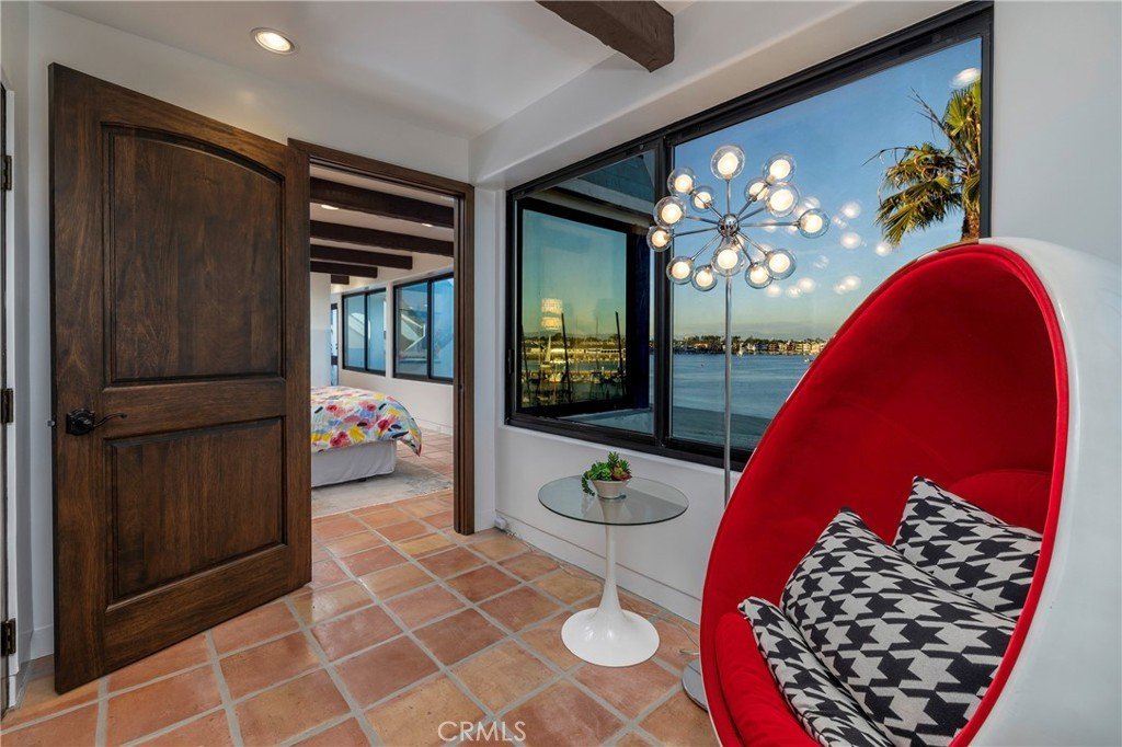 Inside, the open-concept kitchen and living space frame sweeping bay views, while the top-floor primary suite with a sitting area, picture windows, and walk-in closet feels like a private tower retreat overlooking the water. Two additional bedrooms, three and a half baths, and a flowing layout makes the home as livable as it is impressive.