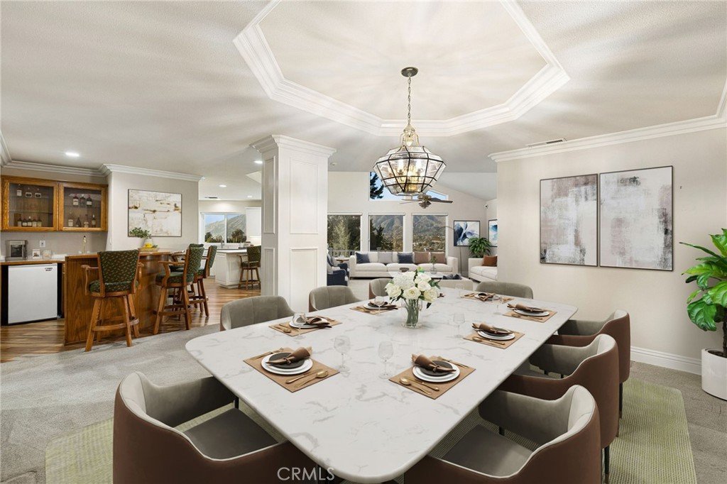 - Interior Features: WetBar, BreakfastBar, CrownMolding, SeparateFormalDiningRoom, HighCeilings, OpenFloorplan, RecessedLighting, SolidSurfaceCounters, AllBedroomsDown, BedroomOnMainLevel, MainLevelPrimary, WalkInClosets
