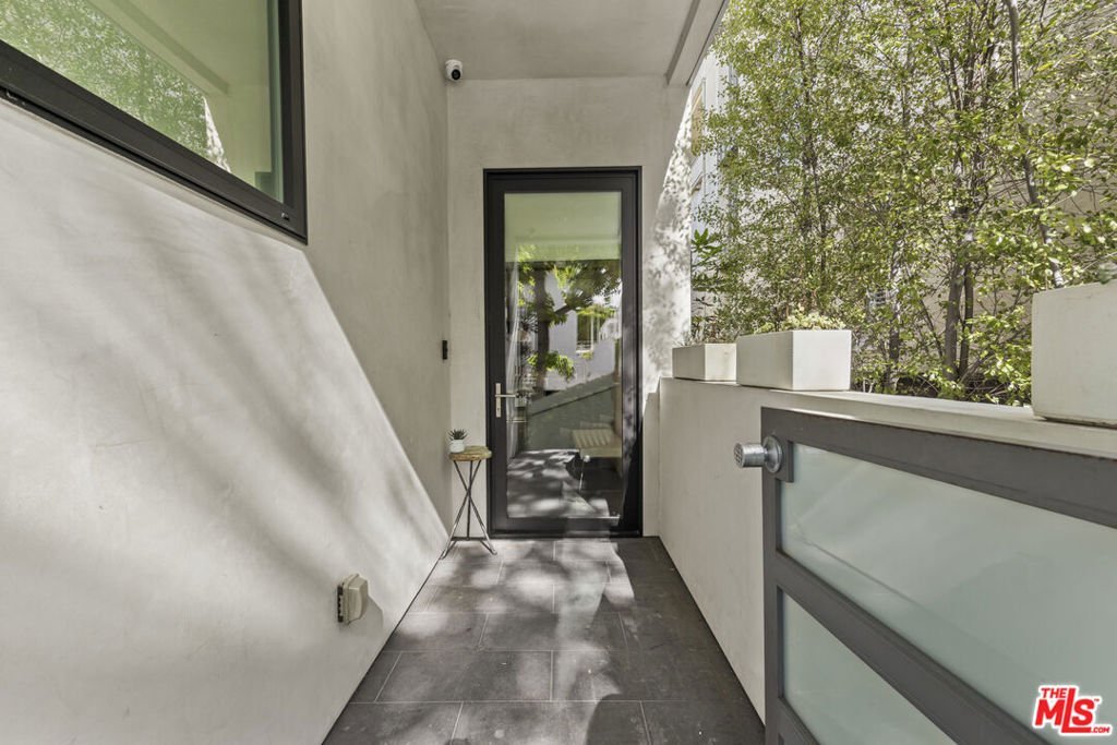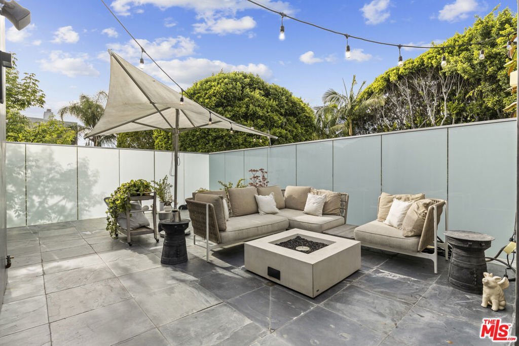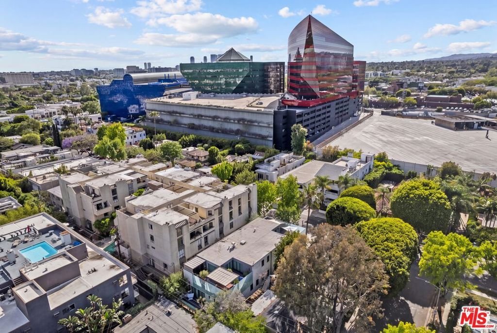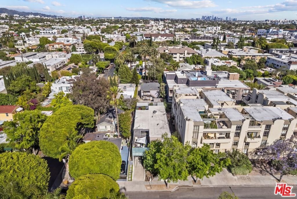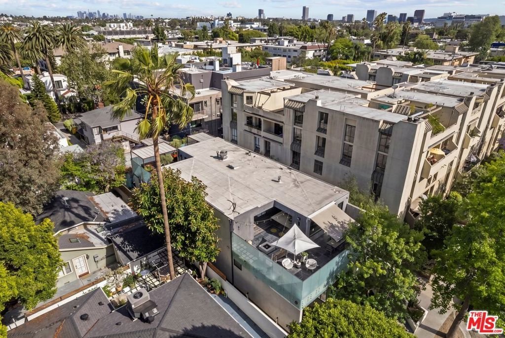 Welcome to a refined architectural residence in the coveted Norma Triangle, where warm modern design meets elevated living. Designed by Tomas Osinski, this three bedroom, three bath home spans over 2,500 square feet and lives like a single family residence within an exclusive two unit building. Interiors are defined by soaring ceilings, Fleetwood windows and doors, and beautifully layered materials, including travertine clad living spaces and custom built in shelving. The chef's kitchen is both sleek and functional, featuring Miele appliances, Caesarstone countertops, and custom Italian cabinetry, seamlessly connecting to the main living and dining areas. The primary suite is a true retreat, thoughtfully designed as an open concept upper level with a spa like bath, dual custom closets, and an integrated lounge space creating a flexible, loft like environment that opens to a private terrace. A private rooftop terrace captures striking views of the iconic Pacific Design Center an ideal setting for entertaining or unwinding. Two additional bedrooms provide versatility for guests, office, or creative use. Additional amenities include a secure subterranean garage with two parking spaces, EV charging capability, and a full home surveillance system. Set within one of West Hollywood's most walk able and sought after enclaves, the home is moments from some of the city's most recognizable destinations. Enjoy mornings at the Park, dog park, public librabry with pool, cafes, design forward shopping at Pacific Design Center and RH West Hollywood, and everyday convenience with the iconic Erewhon Market just down the street. The neighborhood blends architectural pedigree with a true lifestyle component of cafes, curated retail, and premier grocery all within close proximity. A rare, design driven offering that balances comfort and livability in one of West Hollywood's most desirable neighborhoods.
