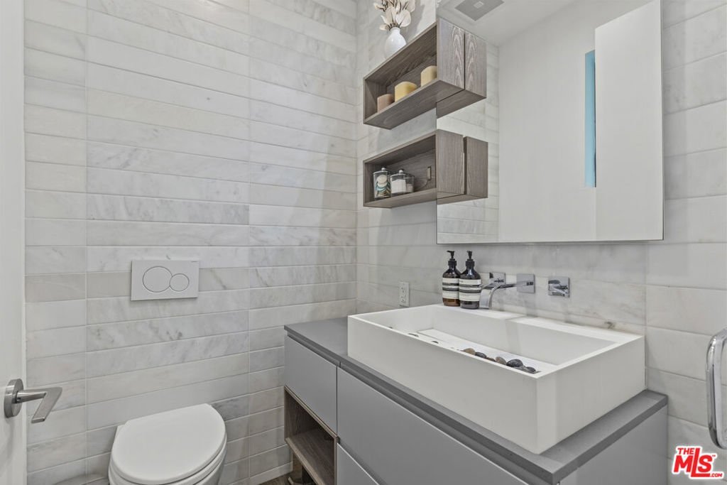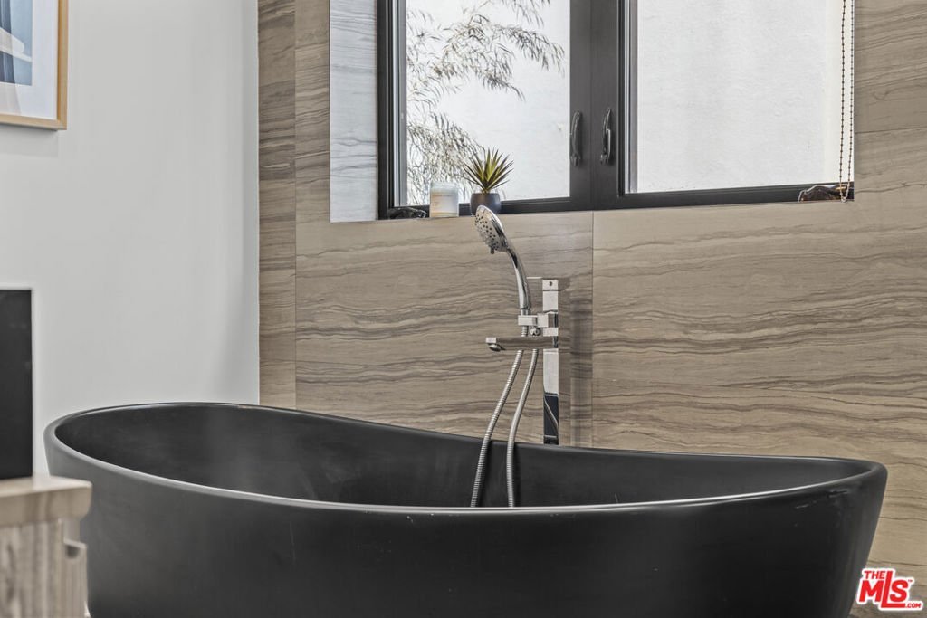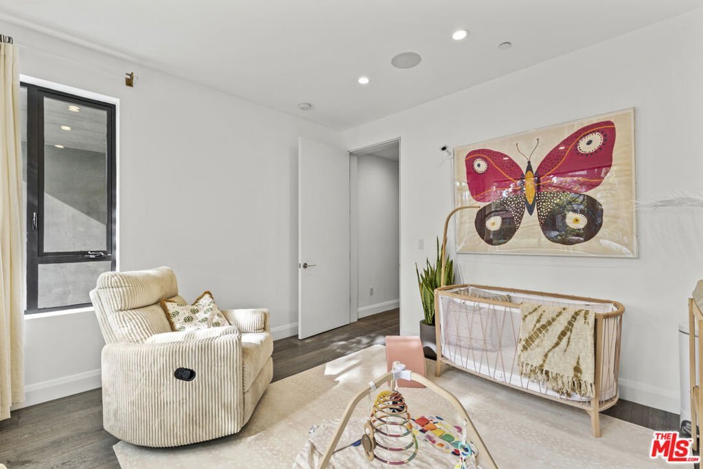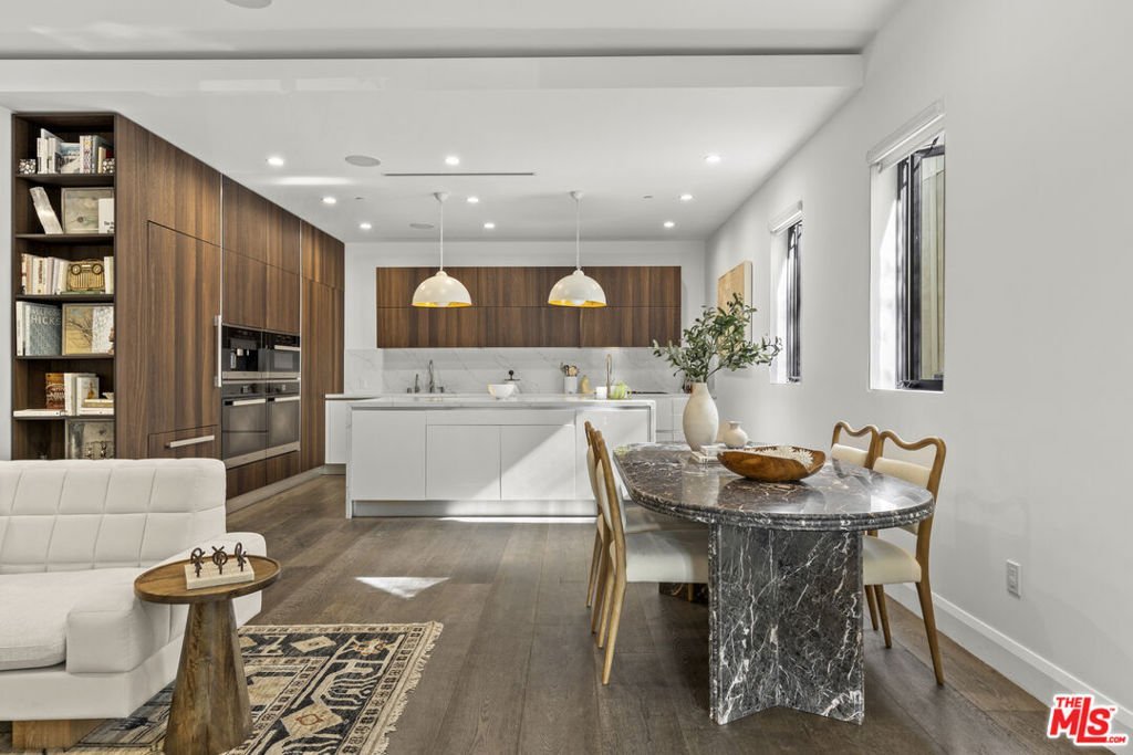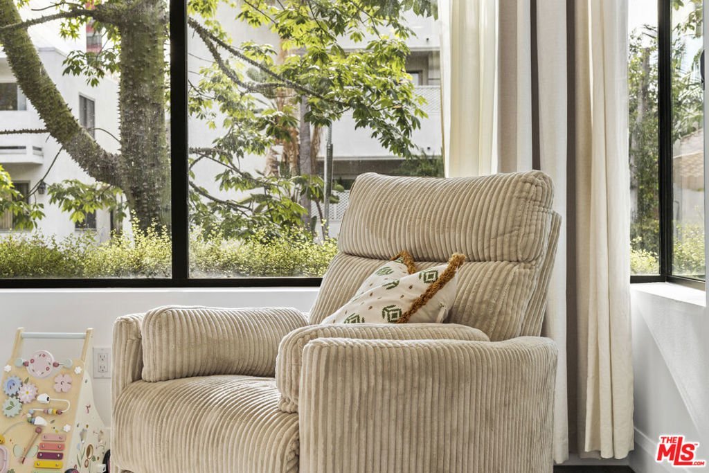 Welcome to a refined architectural residence in the coveted Norma Triangle, where warm modern design meets elevated living. Designed by Tomas Osinski, this three bedroom, three bath home spans over 2,500 square feet and lives like a single family residence within an exclusive two unit building. Interiors are defined by soaring ceilings, Fleetwood windows and doors, and beautifully layered materials, including travertine clad living spaces and custom built in shelving. The chef's kitchen is both sleek and functional, featuring Miele appliances, Caesarstone countertops, and custom Italian cabinetry, seamlessly connecting to the main living and dining areas. The primary suite is a true retreat, thoughtfully designed as an open concept upper level with a spa like bath, dual custom closets, and an integrated lounge space creating a flexible, loft like environment that opens to a private terrace. A private rooftop terrace captures striking views of the iconic Pacific Design Center an ideal setting for entertaining or unwinding. Two additional bedrooms provide versatility for guests, office, or creative use. Additional amenities include a secure subterranean garage with two parking spaces, EV charging capability, and a full home surveillance system. Set within one of West Hollywood's most walk able and sought after enclaves, the home is moments from some of the city's most recognizable destinations. Enjoy mornings at the Park, dog park, public librabry with pool, cafes, design forward shopping at Pacific Design Center and RH West Hollywood, and everyday convenience with the iconic Erewhon Market just down the street. The neighborhood blends architectural pedigree with a true lifestyle component of cafes, curated retail, and premier grocery all within close proximity. A rare, design driven offering that balances comfort and livability in one of West Hollywood's most desirable neighborhoods.