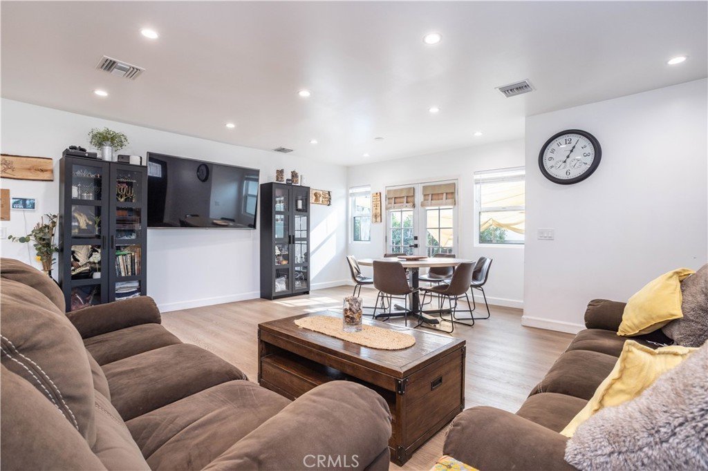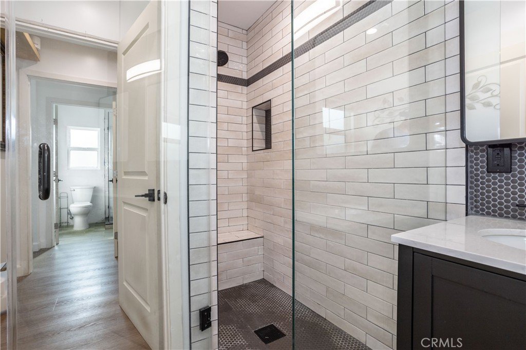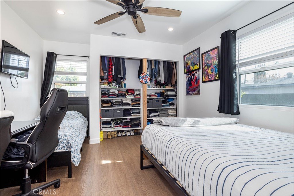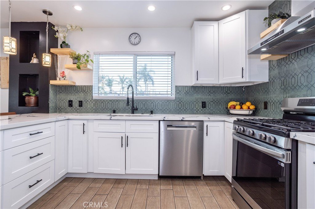 features: Its wrought iron/stucco pillar fencing and lush landscaping enhance its eye-catching curb appeal. The custom front door opens to a flowing 1,557 square foot open concept floor plan that is in “Move-In-Condition” with recessed lighting and water resistant laminate flooring The spacious living room is bathed in natural light from a multitude of windows. The family’s cook will truly appreciate the remodeled kitchen’s abundant cabinets, ample quartz counters with full back-splash, built-in appliances, gas range with stainless steel ventilation hood, breakfast bar with custom pendant lighting, new tile flooring, plus the convenience of the large adjoining dining area with direct patio access. All 4 spacious bedrooms have efficient ceiling fans; 2 are configured as suites with well-appointed private bathrooms with contemporary glass enclosed showers. A total 3-1/4 bathrooms. Functionally located laundry area. Energy efficient dual pane windows will help keep your utility bills low and the interior very quiet. Central heat & air for year-round comfort; With new furnace. Whole house fan. Newer PEX plumbing for peace of mind. You’re going to appreciate and enjoy the large backyard’s concrete entertainer’s patio and the 2 handy storage sheds. Plenty of off street parking for all of your vehicles and other toys on the oversized concrete driveway and in the 2 car detached garage all behind the rolling security gate. All of this sits on a large 7,670 square foot lot that’s close to schools, Melvin D. Simmons Park, and minutes away from the Orange Line Bus-way, Pierce College, Topanga Mall, The Village at Topanga, and Warner center with its entertainment and myriad of gourmet restaurants