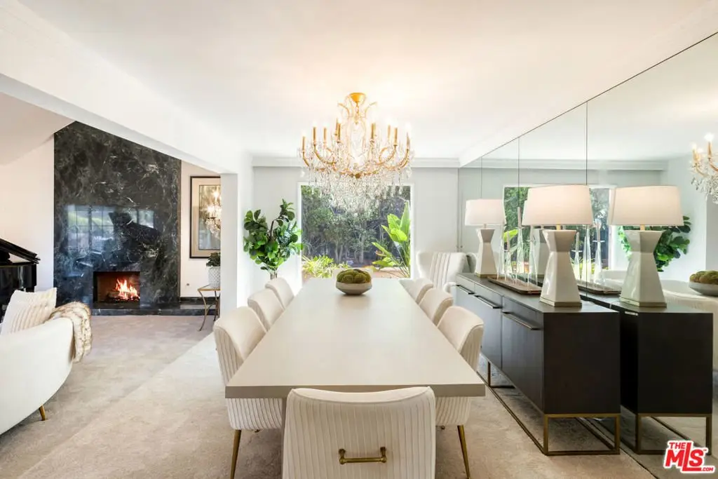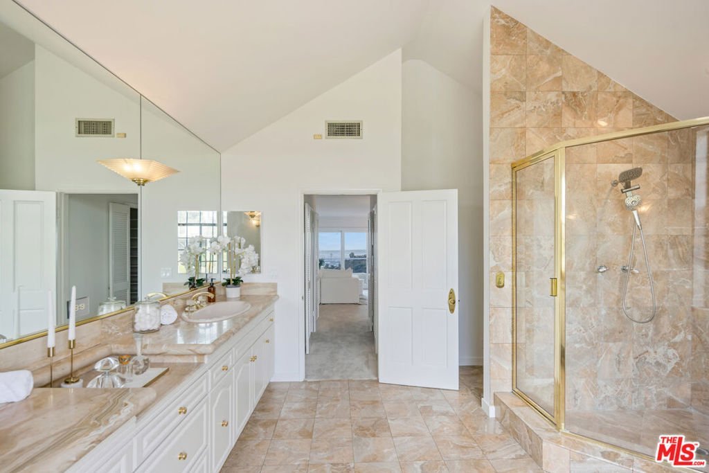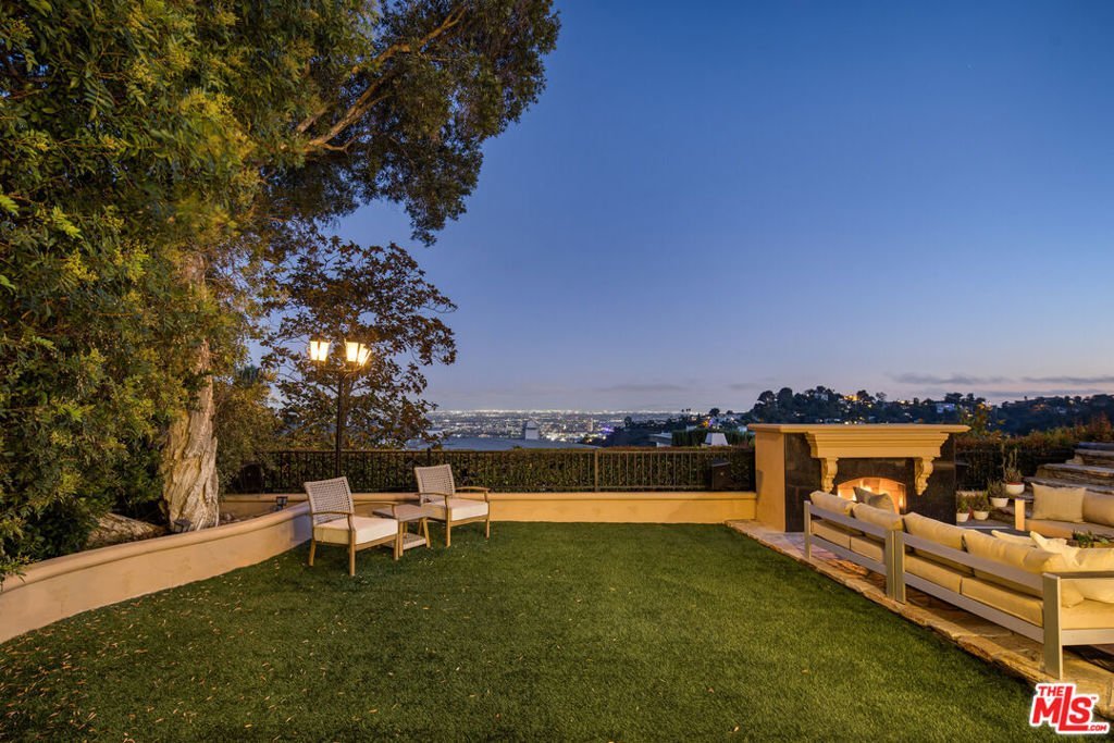 Welcome to 8000 Oceanus, an exquisite residence in the prestigious Mount Olympus enclave with breathtaking cityscape views. Positioned on a coveted corner lot, this nearly 4,000-square-foot home is filled with stunning custom details.Step into a dramatic formal entry featuring soaring cathedral ceilings, elegant chandeliers, and an impressive Onyx stone fireplace stretching from floor to ceiling. Entertain guests in the formal dining room under a dazzling crystal chandelier or ascend the custom wrought-iron staircase to the upper level.The gourmet kitchen is a chef's dream, equipped with top-of-the-line appliances including a Sub-Zero refrigerator, Thermador double oven, 6-burner cooktop with griddle, two warming drawers, granite countertops, and an oversized island with abundant storage and a wine fridge.The luxurious primary suite offers a private sanctuary with a spa-inspired en suite bath, jetted Jacuzzi tub, dual sinks, and two spacious walk-in closets. Step onto your own balcony to enjoy serene views of Downtown L.A. A second staircase off the den leads to a separate private suite, ideal for guests.With a three-car garage plus additional driveway parking, there's room for six vehicles. Outdoors, the meticulously landscaped backyard is perfect for both entertaining and relaxation, offering endless possibilities for gatherings or quiet evenings under the stars. Experience unforgettable sunrises and sunsets while enjoying the best of Mount Olympus living at 8000 Oceanus.