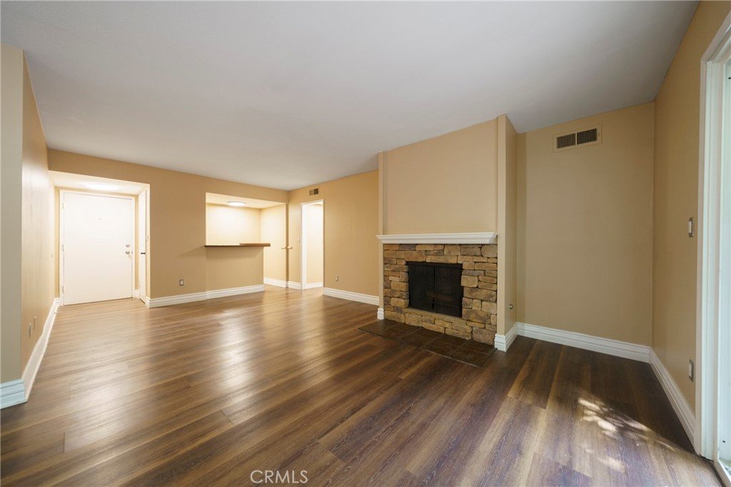 Big solid ground concrete patio, a lush hideaway, as you step inside to discover a light-filled open floor plan, enhanced by tasteful upgrades and modern finishes that elevate both style and comfort. Lovely waterproof 9mm vinyl flooring large sliding doors allowing tons of natural lighting, only shares one living room common wall reducing the noise dramatically, The expansive living and dining areas create the perfect setting for entertaining or relaxing, while large windows invite an abundance of natural light, creating a warm and welcoming ambiance throughout.