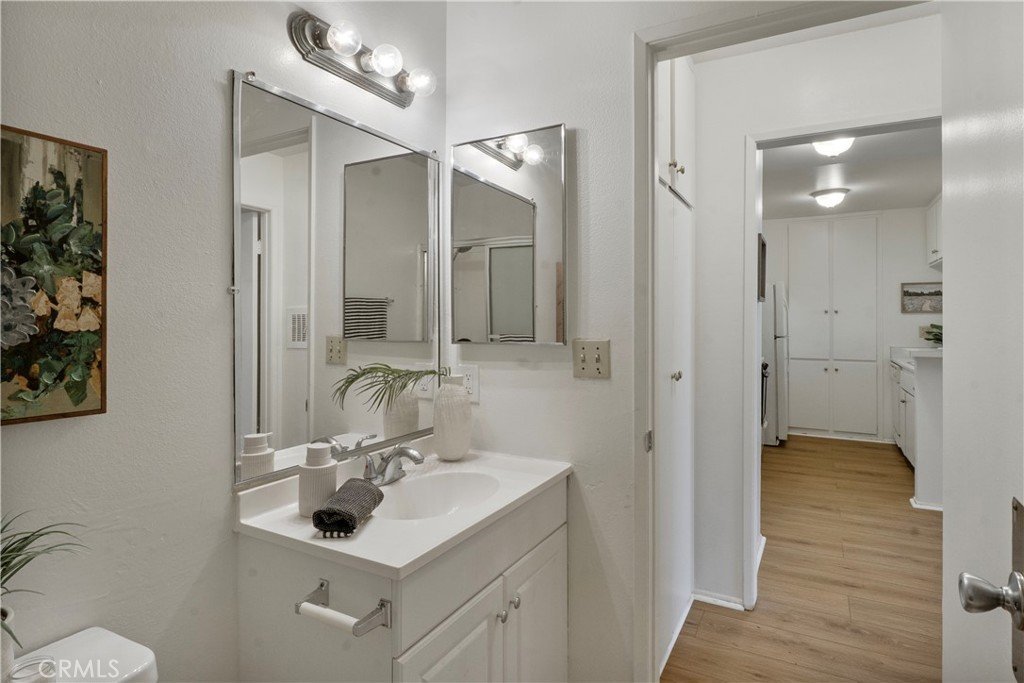 Experience comfort and coastal calm in this beautifully situated one-bedroom, one-bath top-floor condo at Mariner’s Park Village. Located in one of the most desirable and private corners of this gated community, this home offers true serenity with no neighbors above or below. Step inside to a bright and inviting living space with vaulted ceilings that enhance the sense of openness. The living room opens to a private balcony—perfect for morning coffee, reading, or relaxing with the ocean breeze. The balcony is also accessible from the bedroom, creating a seamless indoor-outdoor flow and an ideal retreat at the end of the day.The kitchen is well-designed and functional, offering everything you need within easy reach and plenty of potential for your personal touch. Additional highlights include an assigned carport with outdoor storage, laundry conveniently located just downstairs, and a quiet location shielded from freeway noise.Residents enjoy the well-maintained, park-like grounds of Mariner’s Park Village, featuring two swimming pools, a clubhouse, and a playground. The HOA covers hot and cold water, adding to the home’s exceptional value. If you’re looking for a peaceful, secure home with a coastal feel and quality community amenities, this one is a standout opportunity in Mariner’s Park Village.