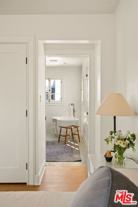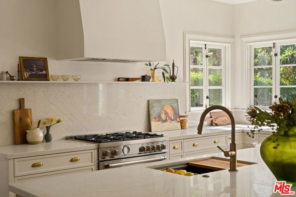Step into timeless elegance with this stunning 1923 Spanish architectural gem situated in the heart of Windsor Village HPOZ, adjacent to esteemed Hancock Park. This home features distinguished period details, including soaring ceilings, exquisite moldings, arched casement windows, and an original Batchelder tile fireplace, collectively establishing an atmosphere of enduring sophistication. The well-appointed cook's kitchen features an oversized white oak island, Bertazzoni stove, abundant storage, dual sinks, a walk-in pantry, and custom cabinetry, all complemented by serene views of the backyard. A generously proportioned formal dining room, bathed with natural light, provides an exceptional setting for distinguished gatherings and entertaining. A ground-floor office overlooks a charming courtyard with a soothing fountain. The upper level accommodates three spacious bedrooms, including a substantial primary suite appointed with a sun-filled bath, walk-in shower, double vanity, and deep soaking tub. An enchanting bridge leads to a versatile recreation room featuring abundant natural light, a three-quarter bath, and a kitchenette ideally suited for extended family accommodations, guest quarters, or a dedicated creative workspace. The peaceful backyard features established mature trees and manicured lawn areas offering a private outdoor retreat. A secured gated entry provides access to a two-car garage with plentiful storage. Around the corner from Harold Henry Park and walking distance to Larchmont Village shops & restaurants. This one has everything that you are looking for!