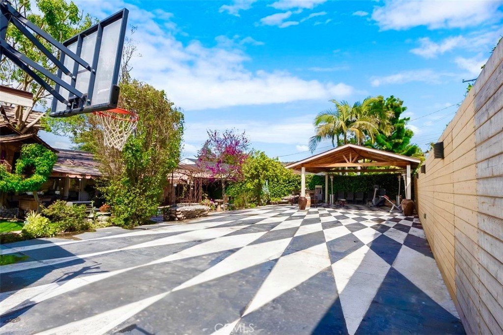 Step outside to experience what truly sets this property apart. The saltwater pool and spa are surrounded by hand-selected stonework and custom landscaping. Built for entertaining, the backyard features a covered patio, painted concrete dance floor, basketball hoop, and space for pickleball or tennis. A custom-built treehouse with spiral staircase, charming swing set, gazebo-style seating area, and multiple lounge spaces create a backyard paradise you won’t soon forget. A large storage shed adds convenient storage for tools and equipment.